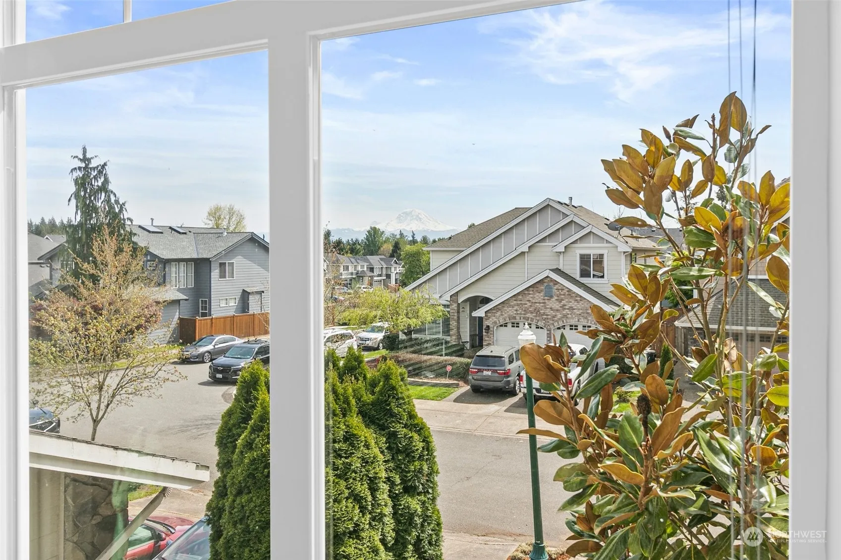 Discover luxury living in the desirable Tamarack Ridge. This exquisite 5 bed,3 bath, PLUS den/office masterpiece is updated throughout. Situated on tranquil corner lot at the end of a serene court, flanked by lush private land. This home offers unparalleled peace and privacy w/ professionally landscaped yard. Marvel at the soaring ceilings, open floor plan and tons of natural light w/views of Mt Rainer. Embrace sustainability with new roof adorned with new solar panels and EV Car charger. Main floor bedroom/office with shower great for Multi-generational living. Kitchen has new S/S refrigerator, oven and dishwasher. Gorgeous granite counter and tons of storage! Community park, walk to schools, shopping & restaurants, Close to freeways.