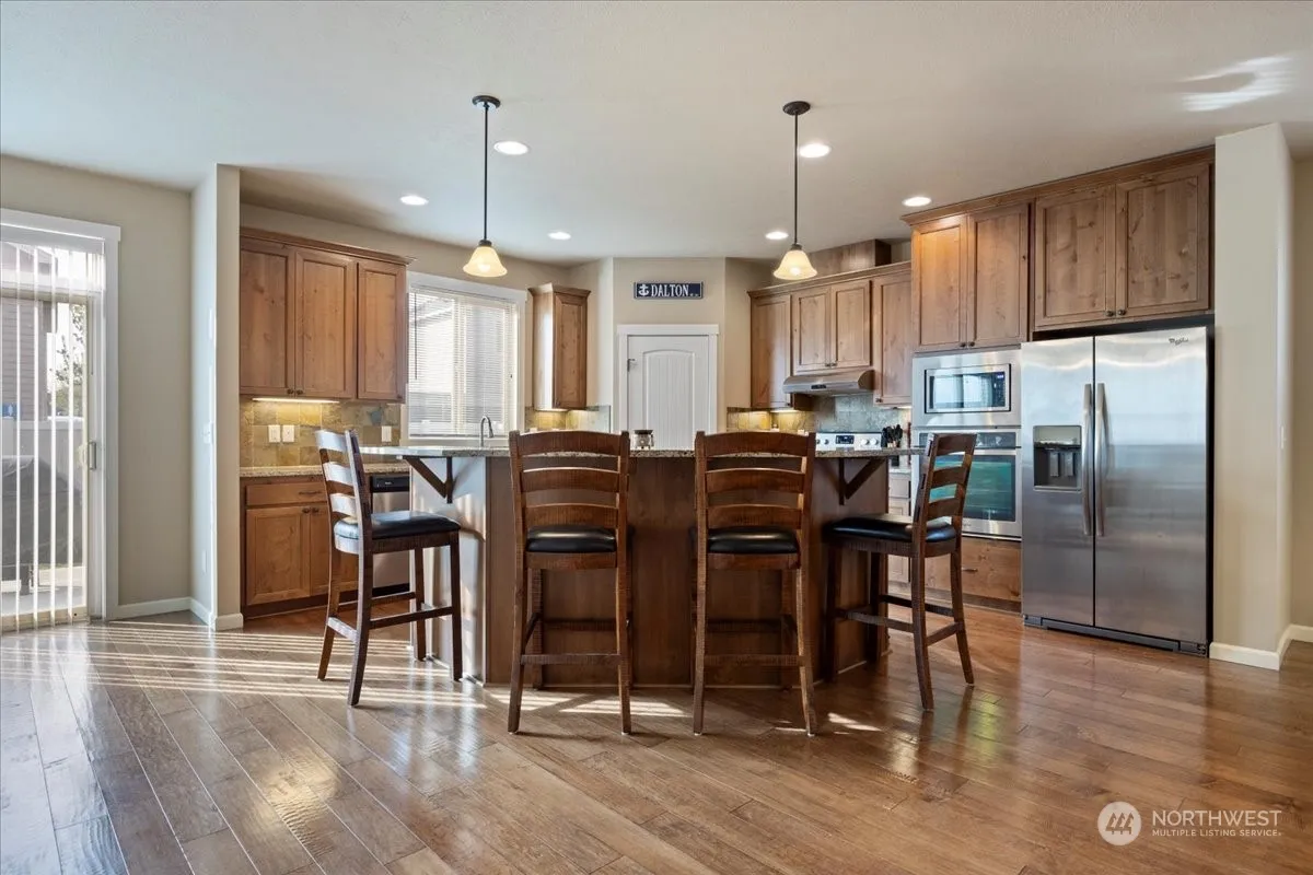 Welcome to this move in ready meticulously cared for home features include Large 4BR+ Den/Office with 2.5 baths and 2847 square feet. Walking distance from Pillar rock/ Country Club golf course! Upgrades include, Fireplace, Kitchen with double oven, granite counters and large entertainment size island. Beautiful hand scraped hardwood flooring. Spacious master bedroom huge walk-in closet. Nice curb appeal with craftsman details. Oversized FOUR CAR Garage!!! Vinyl Fenced back yard. Close to Park, Boat launch, sand dunes, I-90 ect. This Home is a Must see to appreciate manicured landscaping and quality of this home.