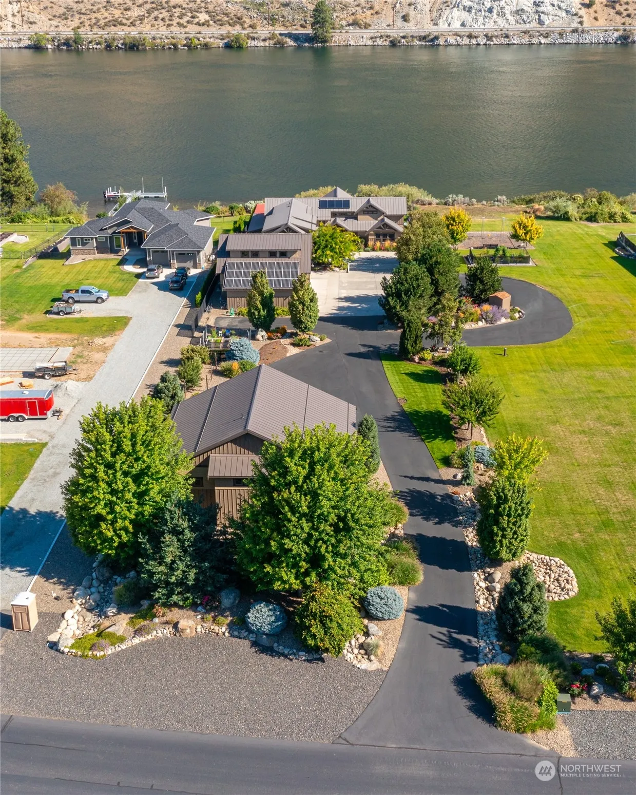 Welcome to 42 Orchard Place at Twin W! Exquisite & top-quality custom-built home, guest home, & matching shop on an acre+ of beautifully landscaped property & 100′ of low bank Columbia River WF! 6000sq’ of overall living space, 4000sq’+ of garage space w/ 9 bays, in ground saltwater pool w/ auto cover, & shared dock w/ boat lift! High end features & finishes throughout including zoned heated floor system, Montana stone fireplace, high quality cabinetry, & commercial grade lighting systems. Enjoy tons of outdoor living space on one of the covered decks w/ infrared heaters or sit patio poolside! Home is private, quiet, & extremely energy efficient w/ upgraded batt/foam insulation + solar panels. Amazing vaca home w/ space for all your guests!