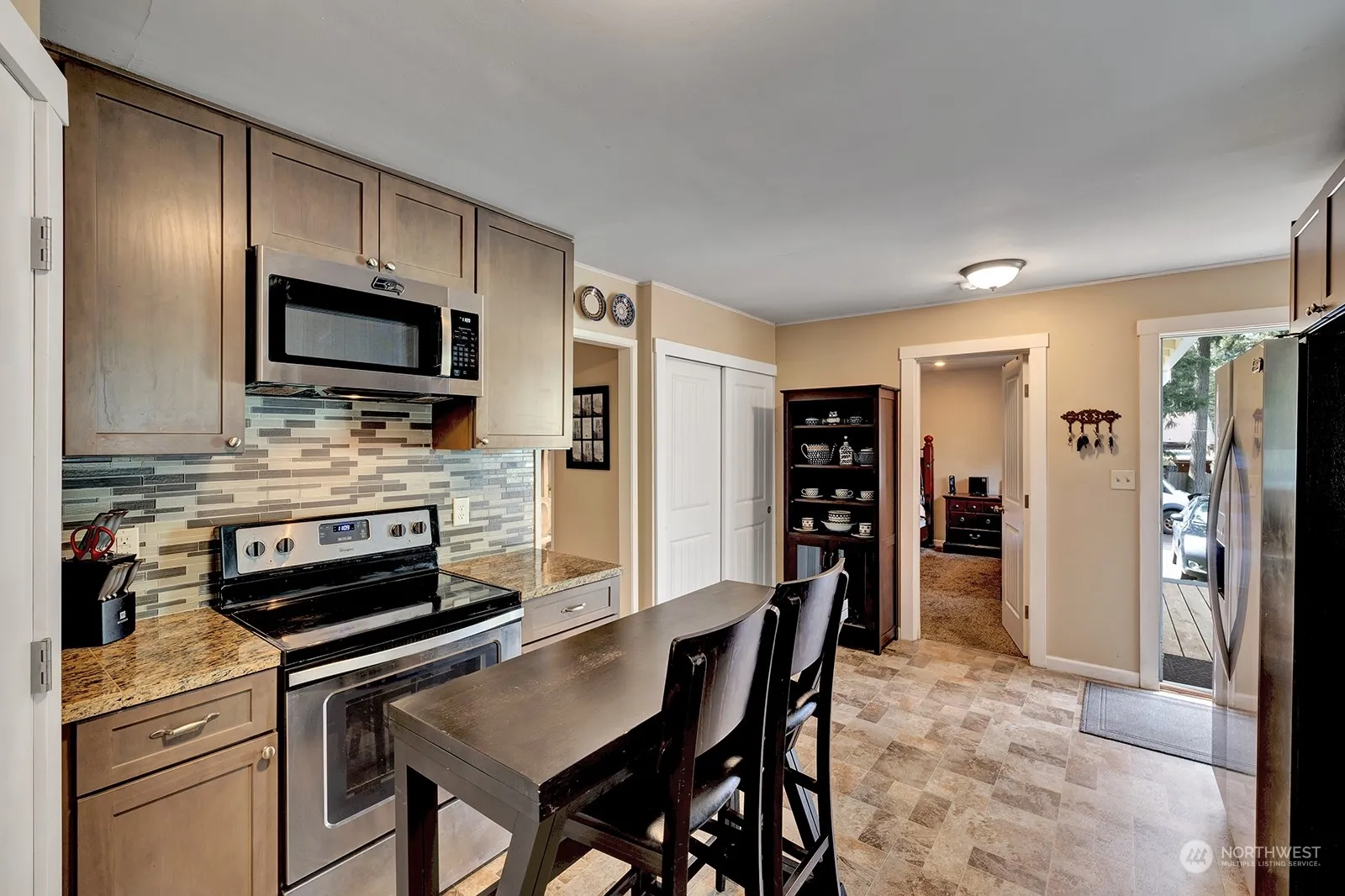 This tastefully remodeled classic home in a serene NW setting offers modern comforts with timeless charm. With 1,293 sq. ft. and 3 bdrms, possibly 4,it features beautiful millwork, wood-wrapped windows, and original hardwood floors. The kitchen boasts granite counters, soft-close cabinets, a garden window, and convenient access to the deck. The primary bedroom has recessed lighting, and upper-level bedrooms include ductless HP-Mini Split systems and plenty of built-ins for storage. All appliances stay, and the home has newer plumbing, a low-maintenance metal roof, and hardy plank and vinyl siding. Drive-up access & room to add a garage. Located at the end of a street with easy access to I-90. Live effortlessly in this updated northwest gem.