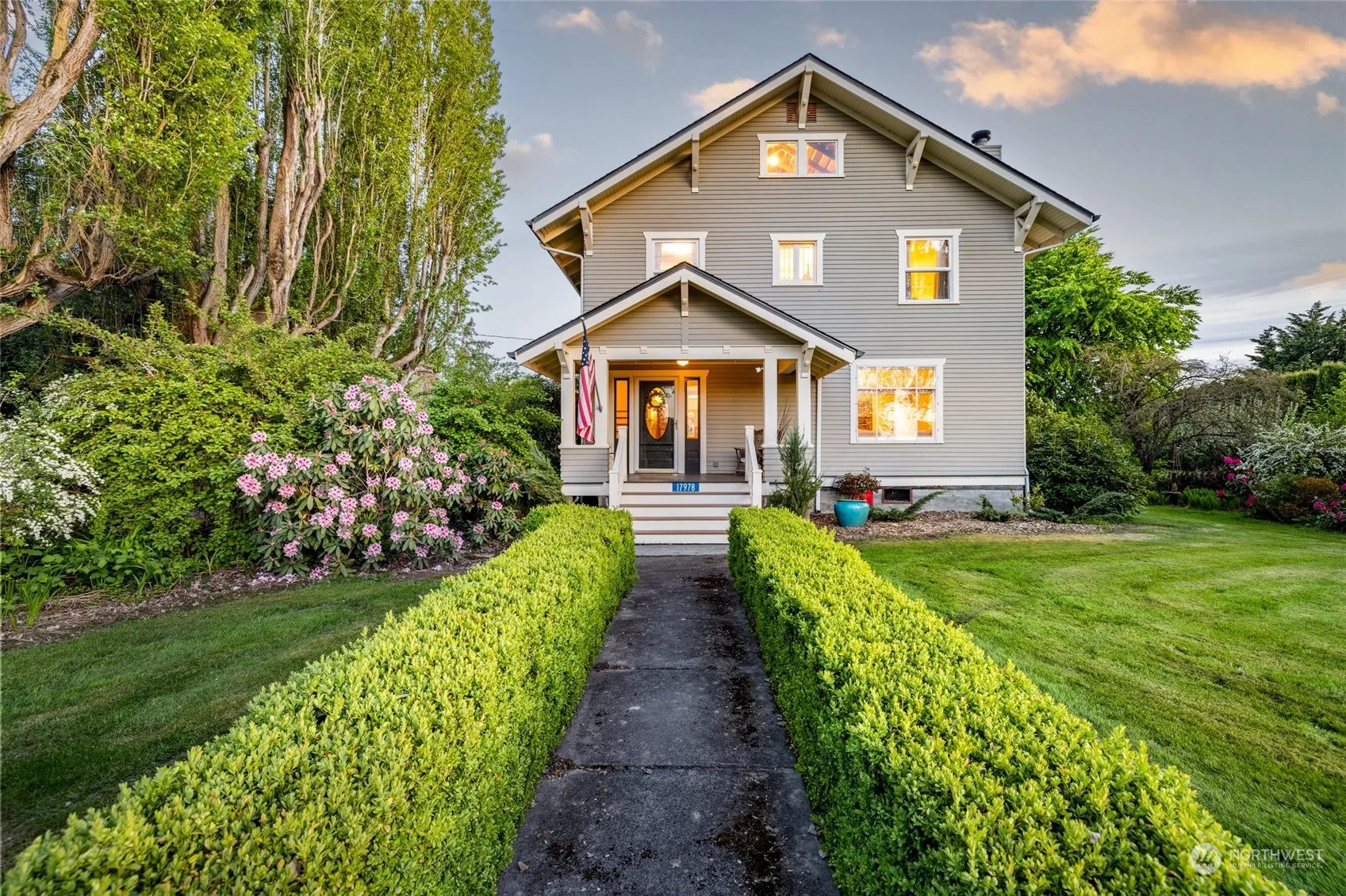 Nestled on a private, tree-lined acre, this 1914 Craftsman overflows with character! Original fir floors, millwork, and pocket doors transport you back in time. Modern updates ensure comfort (new electric/plumbing, gas furnace, Nest thermostat). New roof (2019) and lifetime warranted basement waterproofing. Your green thumb will love the established orchard, vegetable garden, and herb beds. Host gatherings on the expansive deck or cozy up on the garden patio next to a fire. The barn (28’x50′) boasts a charming upstairs entertainment space and a new office! There is a chicken coop, garden shed, and greenhouse on site. A newly floored attic offers growth potential. This captivating home promises a slice of history with modern comfort!