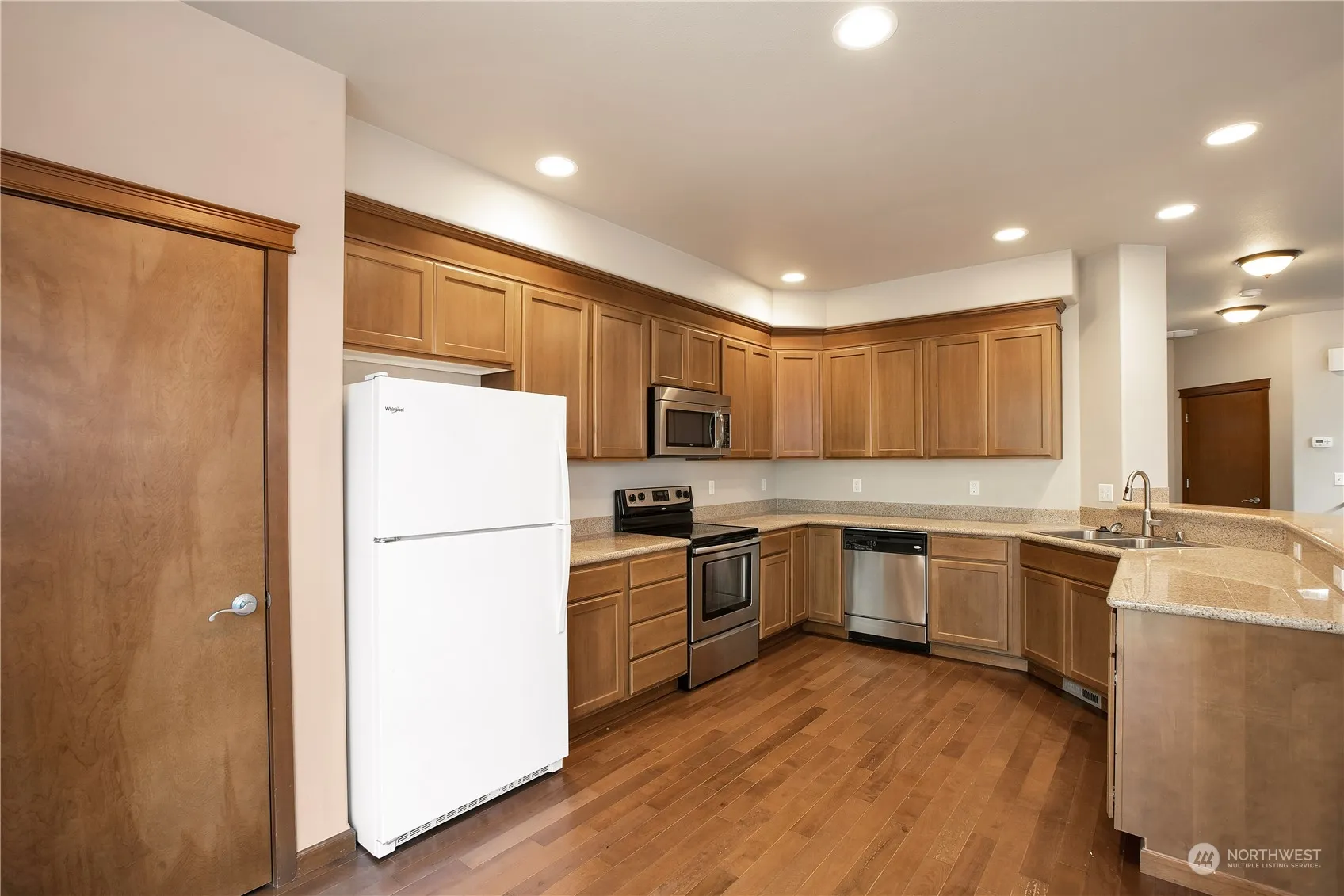 Welcome home to this very well maintained home in the beautiful community of Kensington! 3-bed, 2.5-Bath, 1888 SqFt. 2-Car attached garage. Beautiful hardwood floors in the kitchen and dining areas, new carpet, beautiful wood trim package, gas fireplace for those chilly evenings, Stainless Steel appliances, Great sized Primary Suite and bath, nice open loft area for your home office or play area. Light and bright with tons of windows! HOA maintains front yard for you so easy outside maintenance! Come see this one today!!