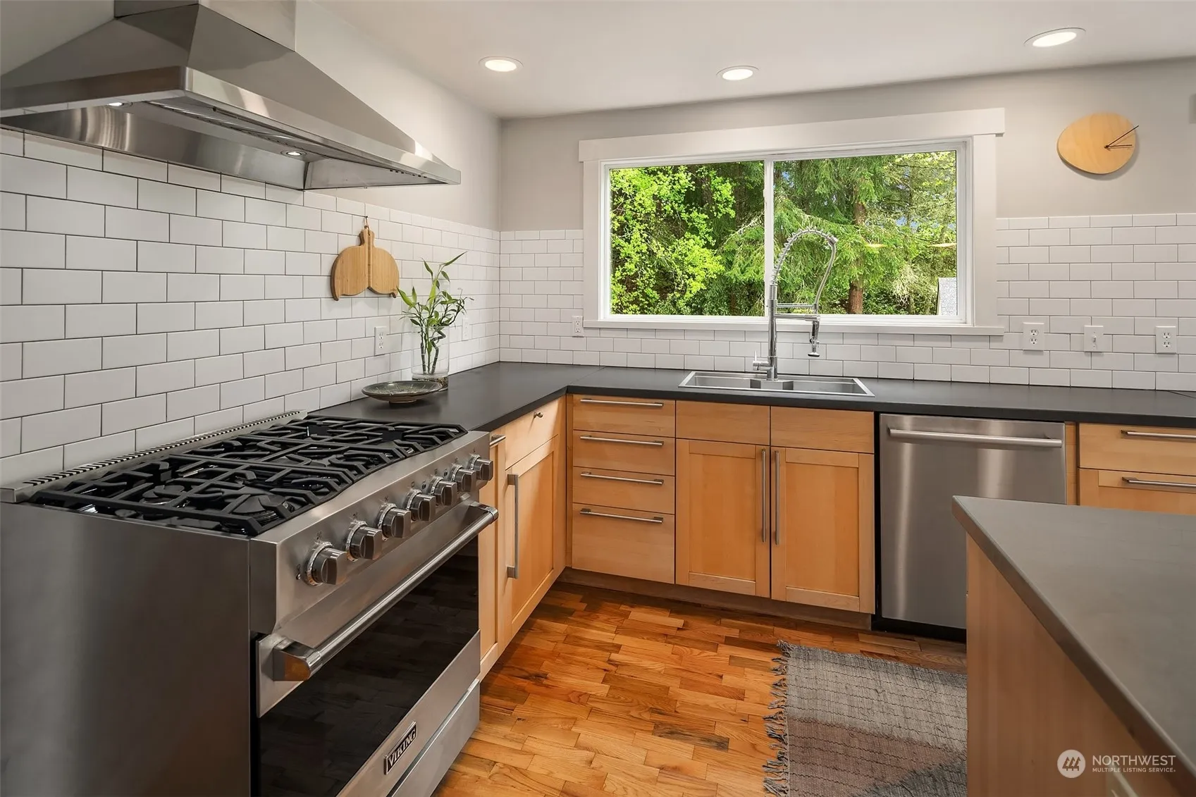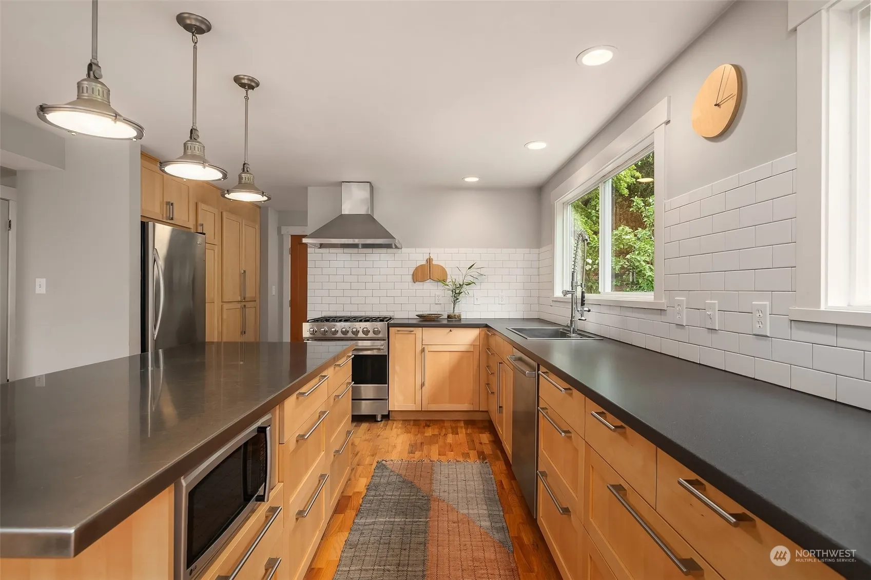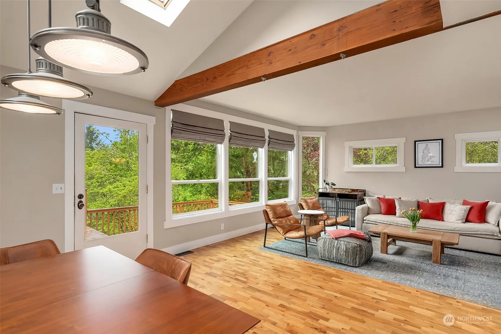 Unique NW contemporary home nestled on 4.98 open & wooded acres. Towering windows bathe the living/dining rooms in natural light, extending seamlessly to a charming deck with SW sunset sky views. The gourmet open kitchen is tailored for both grand feasts & cozy dinners. An Italian Piazzetta pellet stove provides cozy warmth. Imaginative, handcrafted koa stair treads with in-laid madrona rounds connect main to lower floor family room, bedroom w/large walk-in closet, built-ins, 3/4 bath, 2 in-wall electric fireplaces & access onto brick patio. Upstairs find den/office alongside 2 bedrooms, & full bath. Separate shower rooms upstairs & downstairs. Embrace your creativity in the detached artist studio/workshop. Open space ensures serene privacy