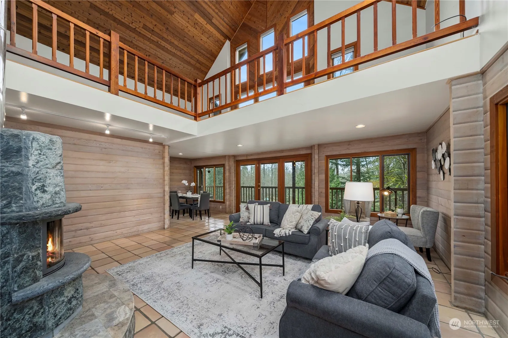 Seller offering up to 50k in concessions for buyer prepaids, closing costs, and/or rate buy down. Stunning Pan Abode lodge-style home w/ picturesque acreage & wrap-around deck. Marvel at the two-story design with a 1300 sq ft unfinished daylight basement. The heart of this home is the impressive two-story great room with a Tulikivi soapstone fireplace. The kitchen is a chef’s delight with a Viking gas range, Miele dishwasher & stone counters. Two main floor beds & full bath. Upstairs, the primary suite impresses with vaulted ceiling, spa-like bath, shower, jetted tub, and sauna readiness. Bonus room opens to a newer Duradex balcony. Additional features: tile roof, new gutters, shared well system, radiant heated floors & more.