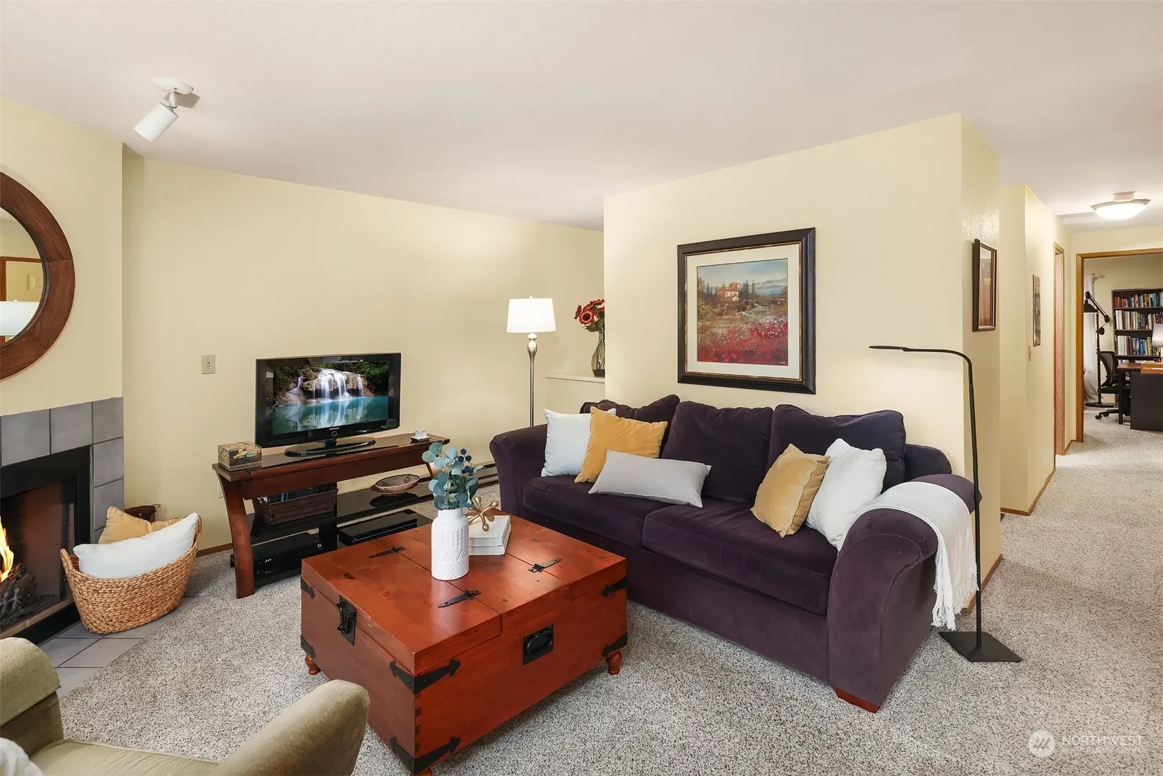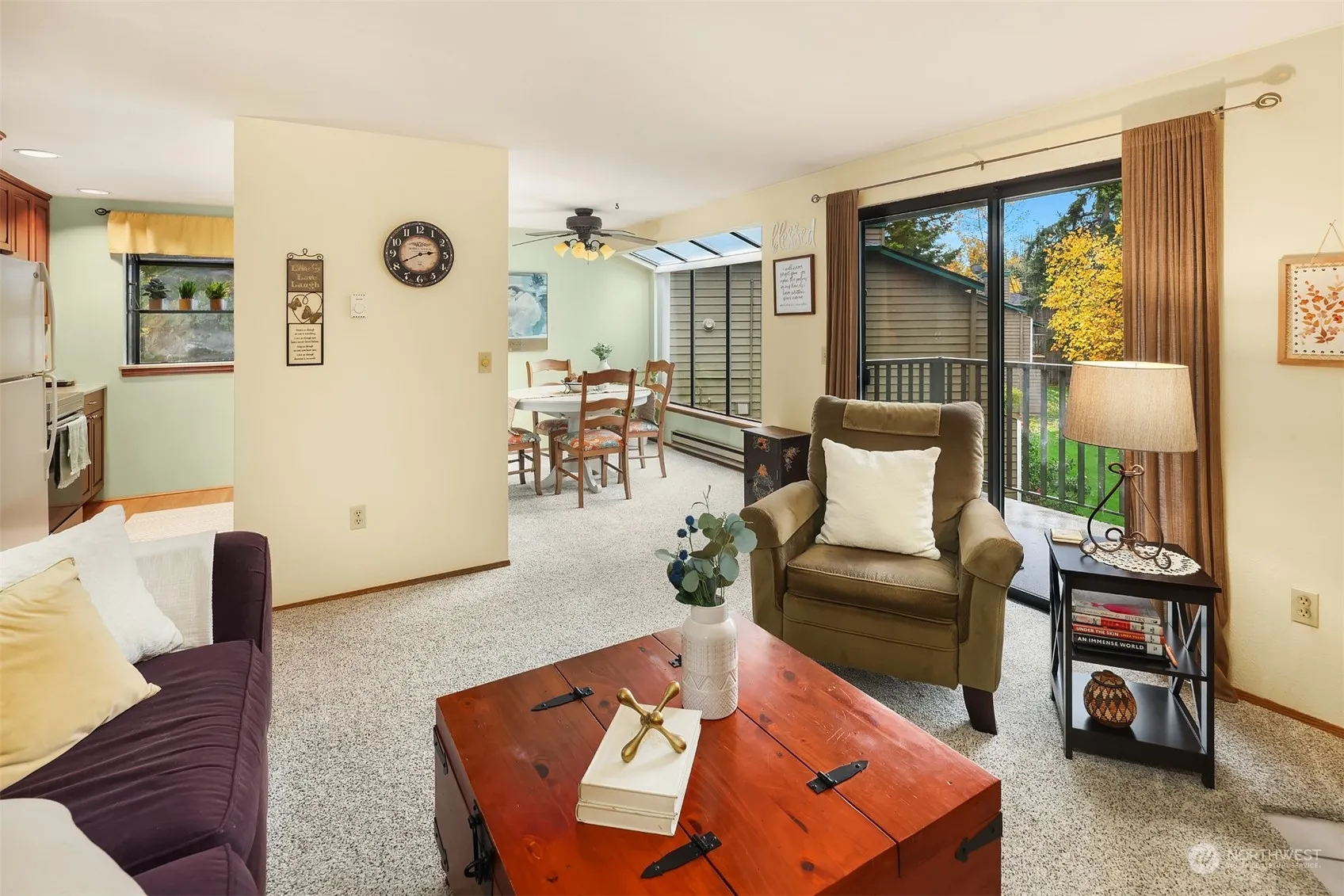 This spacious, top floor, end unit features two large bedrooms and 1.75 baths. Large windows, slider and deck face south for lots of light and views over Swan Lake. Enjoy your privacy in this quiet complex with only 4 units per building. Well maintained with updated kitchen, fiber internet, wood burning fireplace, full-size washer and dryer in unit, storage off the deck, assigned covered parking and tons of extra guest parking. Located in a fantastic, central location with easy access to Microsoft, Bridle Trails, Grass Lawn Park, Redmond, Kirkland and 405. No rental-cap, pet friendly, and it’s pre-inspected.