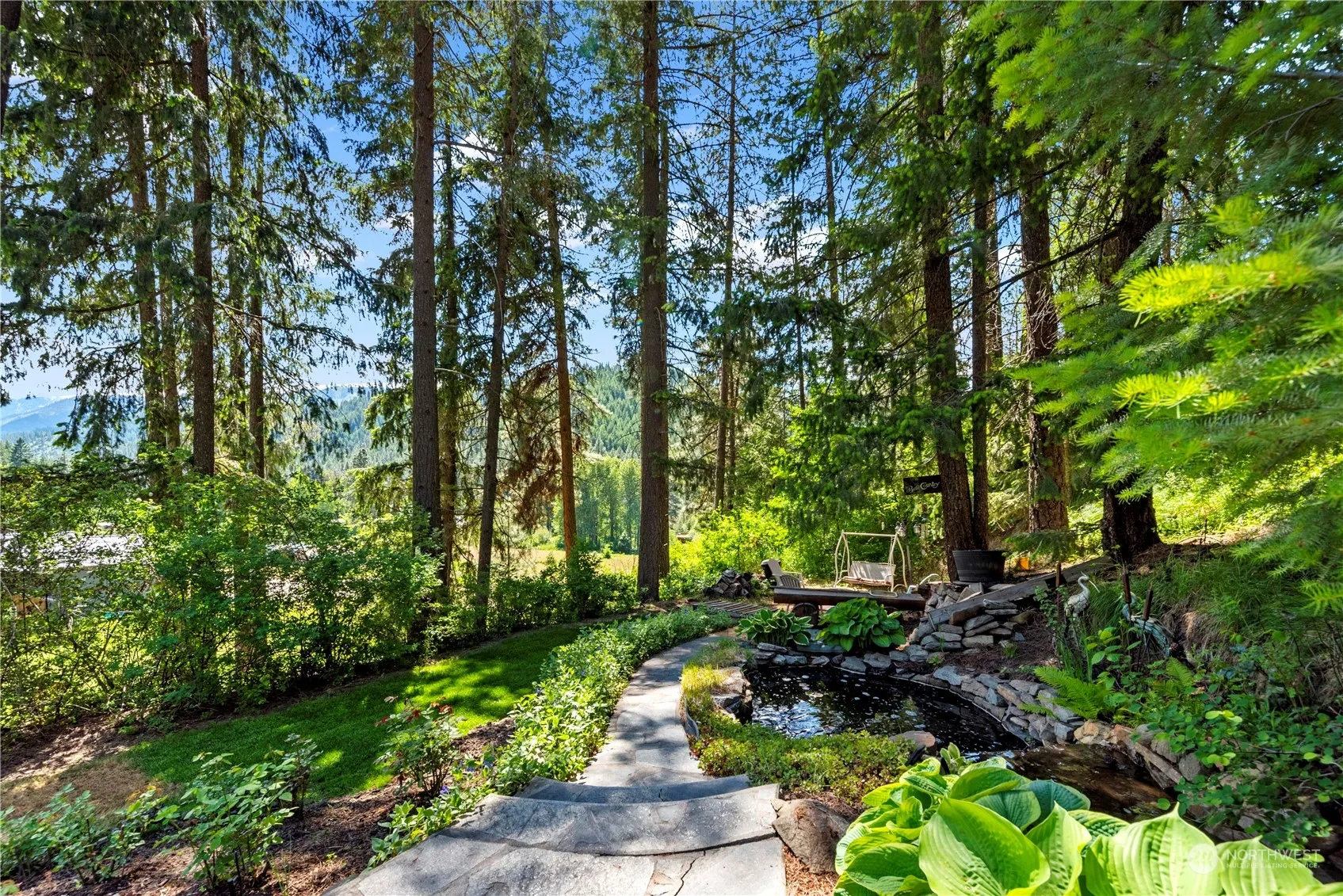Welcome to this country setting home on a spacious 5 acre parcel! This perfect serene retreat features a beautiful wooden gazebo, a waterfall trickling into the koi pond and multiple garden areas. The upper acreage is a peaceful sitting area with views of the mts. The cozy home has an open floor plan featuring newer flooring, updated bathrooms, newer hot water tank and appliances, updated fixtures, outside painting, a wood burning stove and a perfect view of the mts. The property has a 2 car garage with a loft for storage, sheds, RV hookups, 220 for EV, and extends to a meadow across the street for a possible ADU. This property offers peaceful tranquility while located just minutes from Leavenworth, skiing, and all mountain town activities!