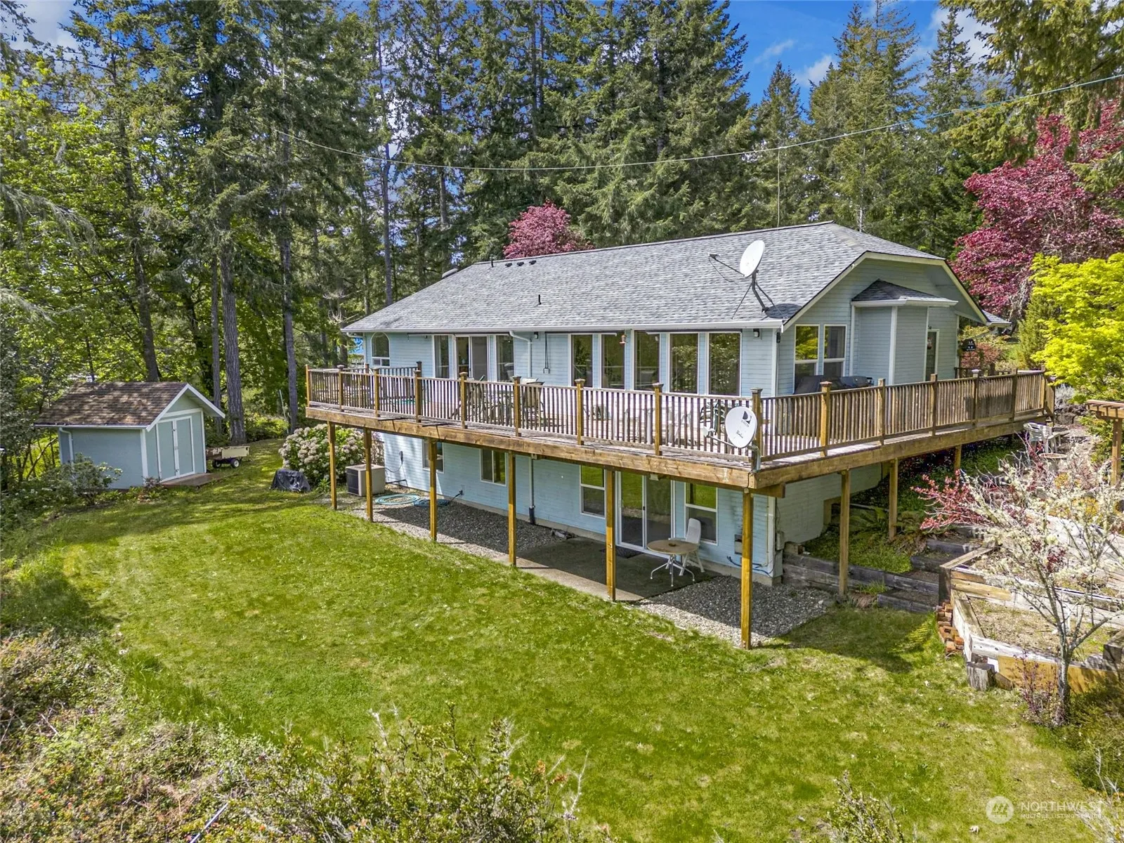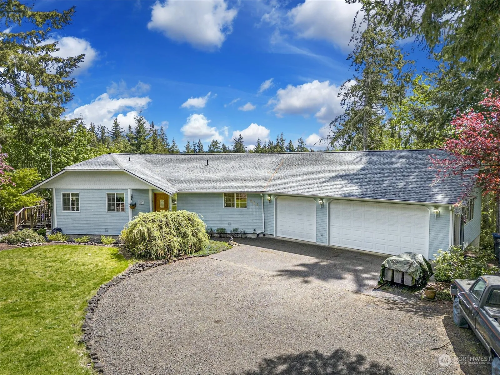 This remarkable high bank partial view waterfront property features a main-level primary bedroom, granting ease & convenience. Open concept kitchen, dining & living room offering beautiful partial sound views. The lower level unfolds with 2 bedrooms & a bonus room, providing ample space for relaxation & recreation w/access to outside. Massive deck complimenting the home for all your enjoyment. RV parking ensures practicality & convenience. Oversized propane tank and a newly installed roof. Experience daily deer visits, greeting you at the doorstep & adding a touch of nature’s charm to your routine. This well cared for home is approx. 10 mins to Allyn & 20 mins to both Belfair & Shelton. A peaceful retreat from the hustle & bustle.