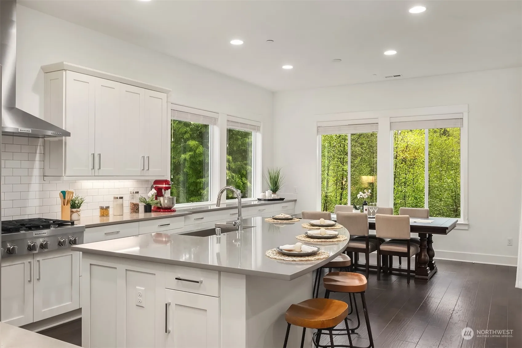 Like-new North facing Tri-Pointe Homes resale in the coveted Eagles Glen community. Nestled on greenbelt on a quiet cul-de-sac road in the heart of Sammamish, this 3,405 sq ft home features 10′ ceilings and elevated finishes throughout. Open concept main level w/sought after guest suite, dining, great room living space, and gorgeous chef’s style kitchen w/quartz counters, walk-in pantry, & SS appliances. Upper level massive primary suite with 5-piece ensuite, 2 other spacious bedrooms & a 3rd level bonus room! Over $50,000 in custom closets & cabinets! Private and level South facing backyard w/ custom fence and freshly painted entertainer’s deck! Award winning ISS schools! Easy access to both I-90 & 520 for an easy commute.