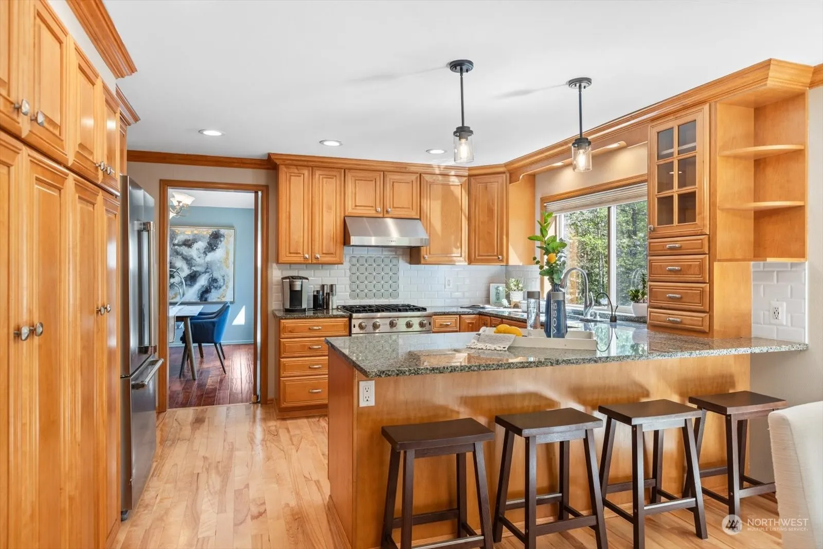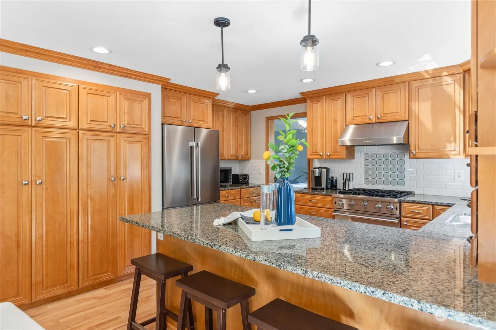 Nestled in the heart of Mukilteo, this home seamlessly combines comfort with modern living. The nicely updated kitchen features granite countertops, high-end appliances & exquisite cabinetry, ideal for culinary adventures. Unwind in the cozy family room by the warmth of the gas fireplace w/modern stone surrounds or entertain on the expansive deck overlooking a lush greenbelt, ensuring privacy & scenic views. This property includes a separate-entry ADU complete w/living rm, gas stove, dining area, bedroom, bathroom & a kitchen adorned with stunning countertops. Great rental income!! Plus indulge in the luxury of a private hot tub. Perfect for both relaxation and hosting, this home caters to all aspects of modern life. NO HOA