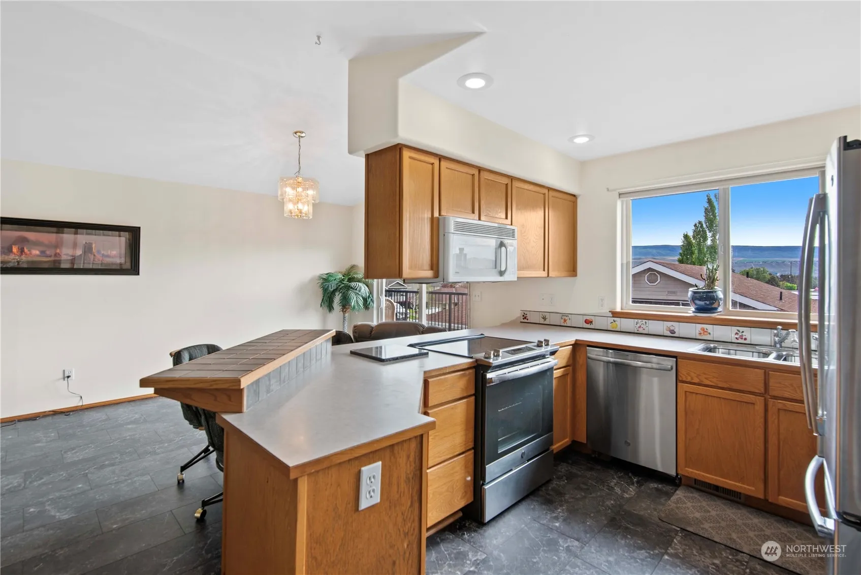 Enjoy amazing mountain and city views from your large Trex deck in this desirable northend location. One-level living on an upper corner lot in Western Heights. Large primary bedroom with ensuite tub & shower in primary bath and slider to hot tub. Upgrades include new exterior paint, vinyl fence, stainless steel appliances, washer, dryer, luxury vinyl tile flooring & new heat pump/AC. Enjoy local recreation instead of doing yard work with the low maintenance rubber mulch landscaping, irrigation & sprinkler system. Fenced and graveled parking area available for your RV, boat & toys.