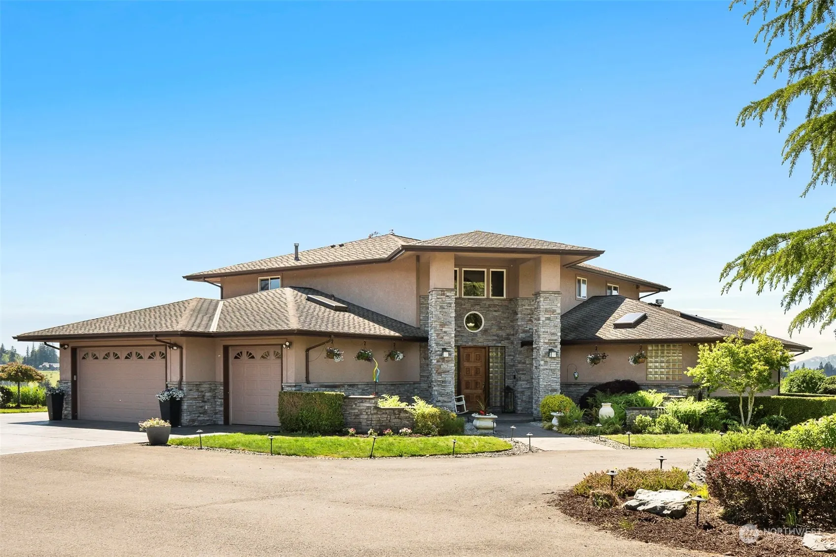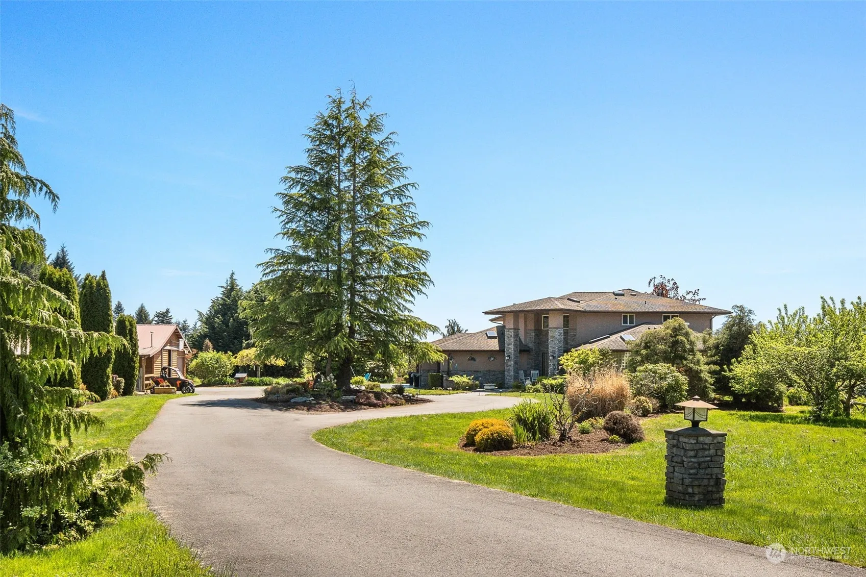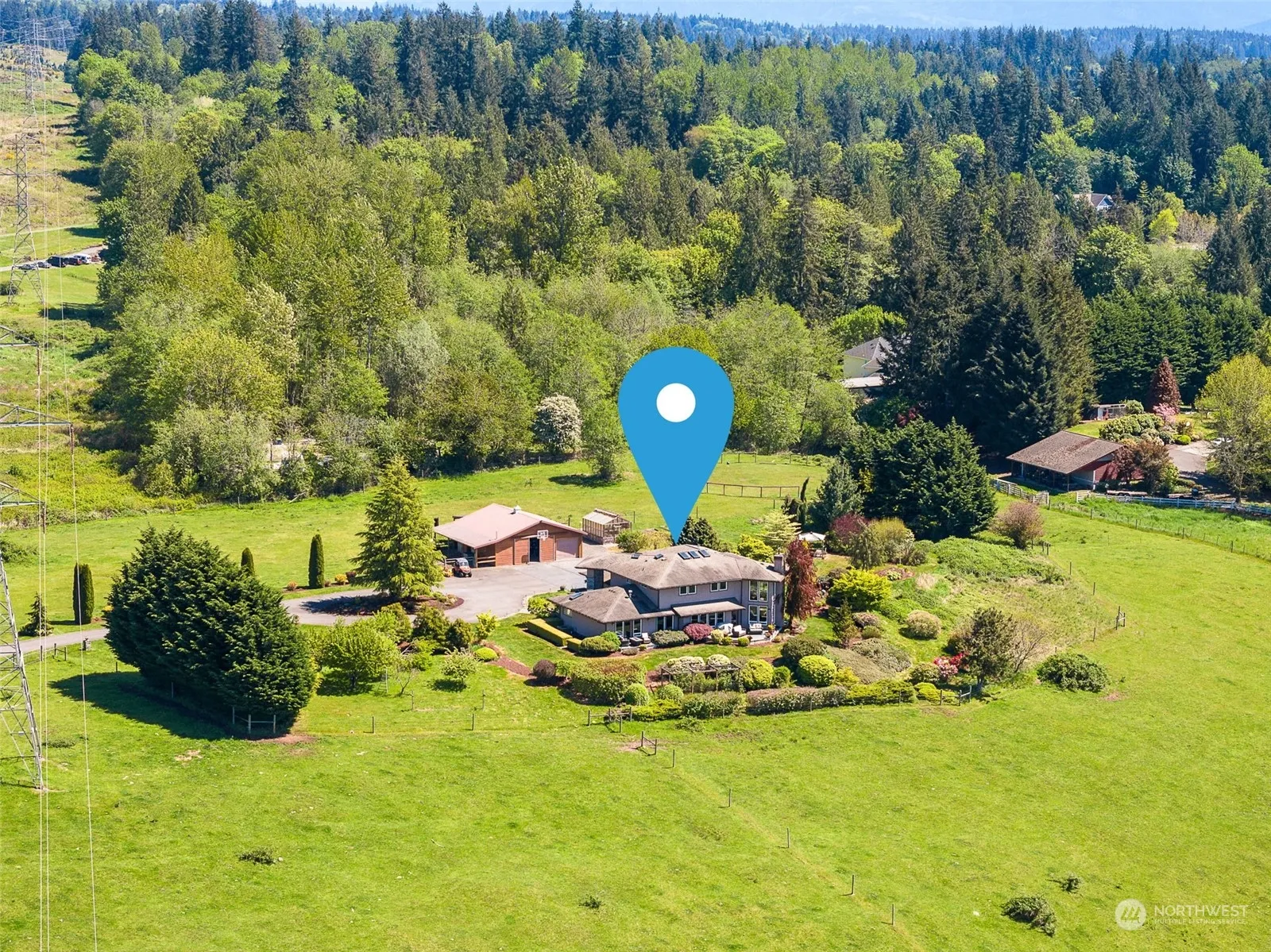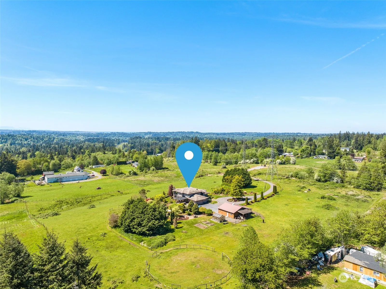 Welcome to an extraordinary blend of luxury & tranquility, where sprawling landscapes, equestrian’s paradise & impeccable craftsmanship converge to create a once-in-a-lifetime opportunity. With 19.15 subdividable acres, this magnificent ranch estate offers a lifestyle of unparalleled refinement. Spanning 4,409 Sq. Ft. of meticulously designed living space & equipped w/additional features such as a sunroom & home theater room. The stunning 2 story stone fireplace with 1000 yr. old Juniper mantle is sure to be a conversation starter! Horse stables w/tack room, riding arena & pastures, bordered by manicured landscaping, fruit trees & soaring views of the Olympic Mountains, this equestrian retreat is more than a home – it’s a way of life.