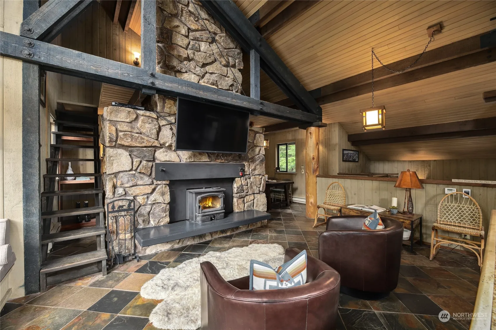 Welcome to your tranquil escape nestled in the heart of Snoqualmie Pass. This generously sized Midcentury Modern home, featured in Sunset Magazine, offers a seamless blend of style, comfort, and natural beauty. Steps from Summit Central, with the Commonwealth Restaurant, DruBru, and Laconia Market, offering unparalleled convenience for outdoor enthusiasts while still maintaining the private seclusion of mountain living. After a day on the slopes, walk back to your cabin and enjoy the hot tub, warmth of the radiant heat, wood stove and the comfort of the natural features inside your mountain home. Situated on a sprawling oversized lot, the property offers a natural landscape of huckleberries, evergreens, and bountiful private spaces.