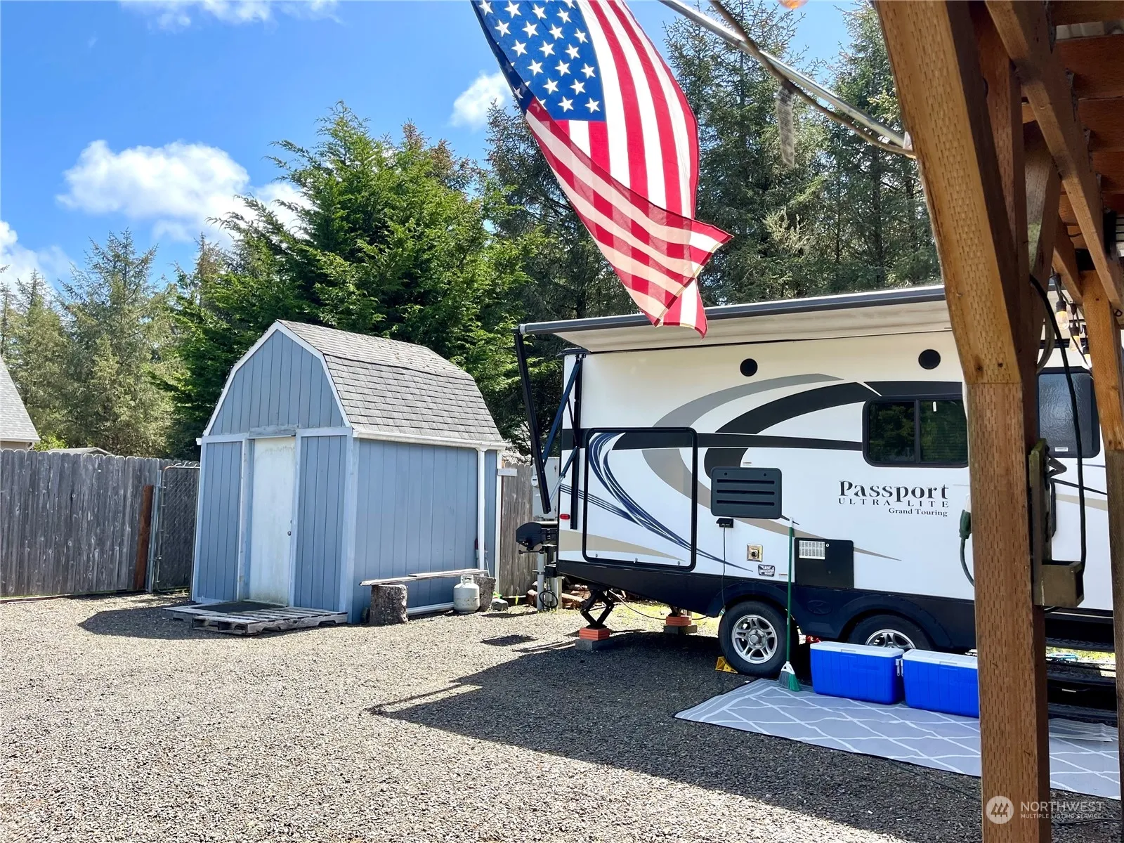 Welcome to your coastal oasis! Situated on a generous corner lot, offers unparalleled opportunities for your dream retreat. Gazebo with Power, firepit, 2 separate driveways, well maintained landscaping. The centerpiece of this property is the charming shed with a loft above. Ideal for hosting guests or enjoying a private escape, this cozy retreat is sure to delight. With its prime location in a desirable neighborhood across from Duck Lake and within minutes of the Pacific Ocean, Damon state park, Jetty, Bay and much more. Whether you envision building your dream home or crafting a vacation getaway, the possibilities are endless. RV camp up to 90 days a year.