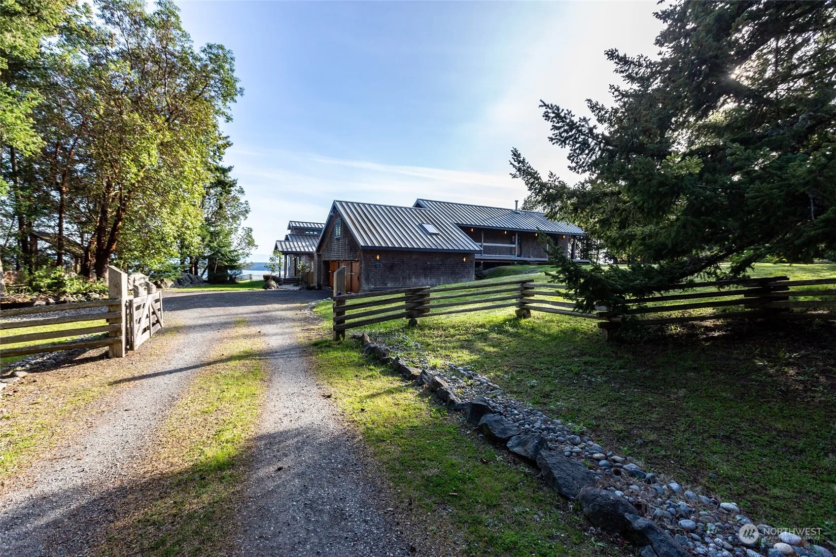 Enjoy awe-inspiring southern vistas of Griffin Bay and Olympic Mountains. Custom built NW home in desirable Pear Point neighborhood offers 2749 SF of living space, 2 large bedrooms and 3 baths. Main home offers 1361 SF showcases architectural beams in a welcoming great room with cozy den, chef’s kitchen, primary suite and wrap-around deck. Sun drenched courtyard connects 1388 SF detached second bedroom with bath/laundry and upper level office, den, spacious bonus room and a 3-car garage. Abundant serene spaces for relaxation and entertaining.Property represents a true island lifestyle with 6.5 parklike acres, private trails and quick access to beaches, trails, dog park, boat launch and minutes to downtown Friday Harbor, ferry and amenities.