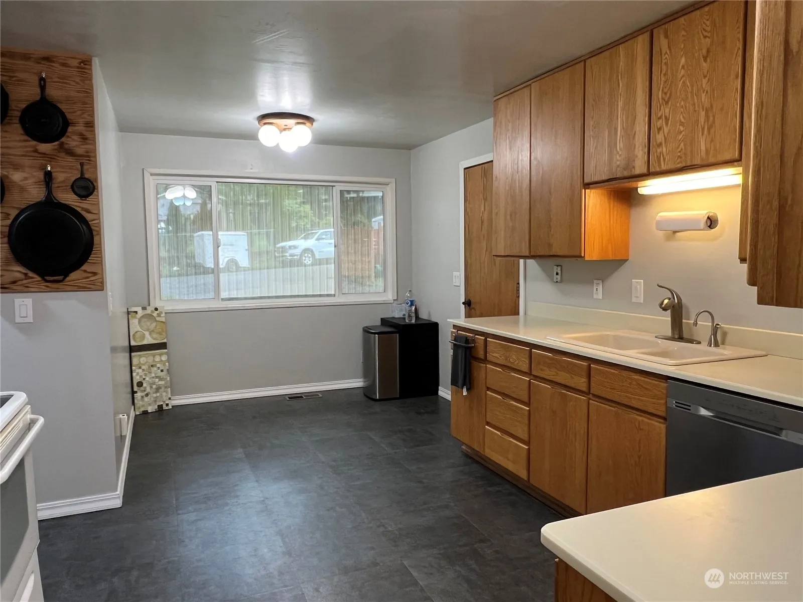 3Bed/2.25Bath Rambler w/ Basement on 12,000+ SqFt lot backs to green belt. Slate entry, Corian kitchen counters, hardwood floors, open concept living and dining room with green space view out rear picture window. Basement provides 1340 sqft of finished living space–great room, bonus room currently used as 4th bedroom, extra storage and den/work space. Large, fenced back yard for playing, gardening and cultivating existing fruit trees. Great location close to parks, Lake Fenwick, Kent Station, freeway. Sweet property!