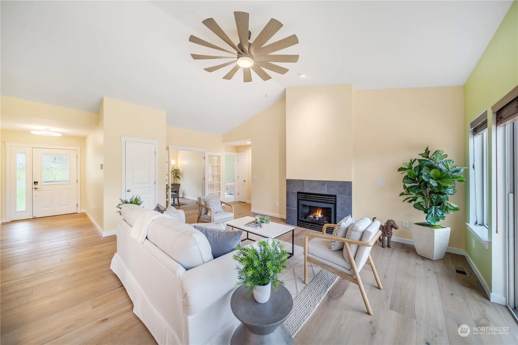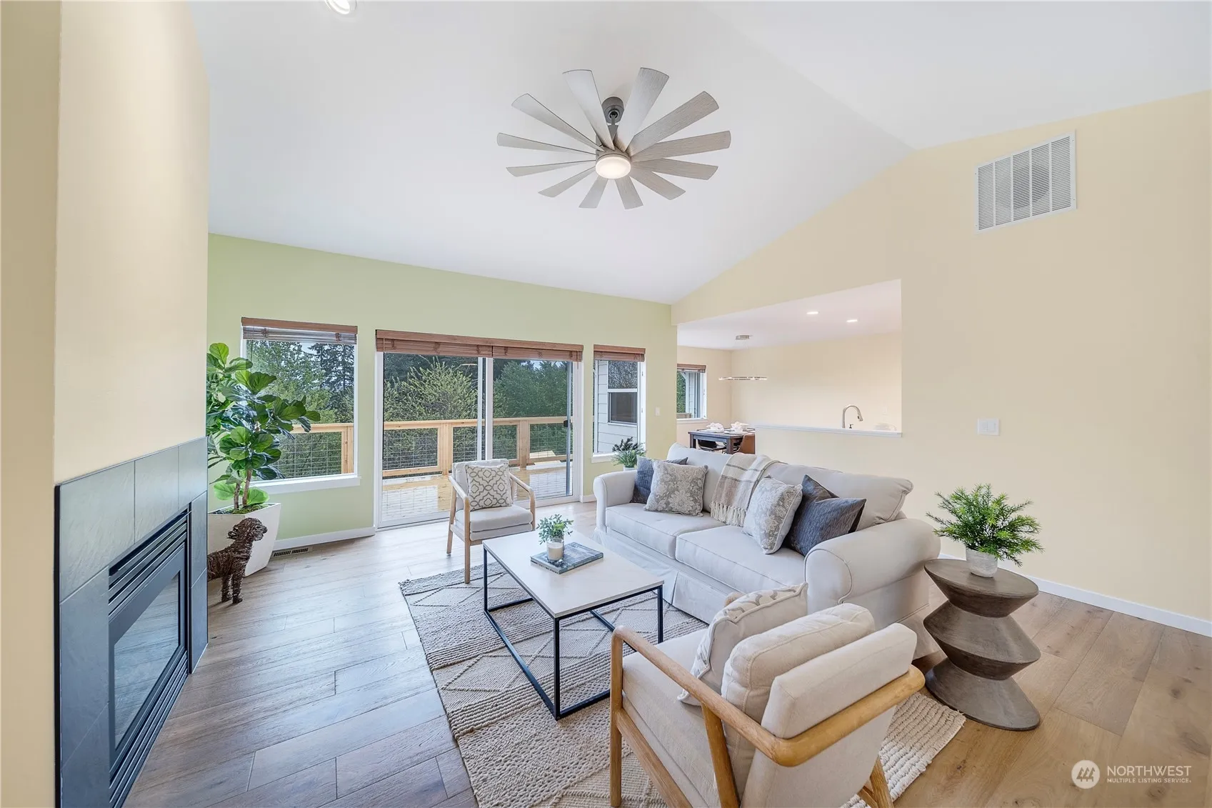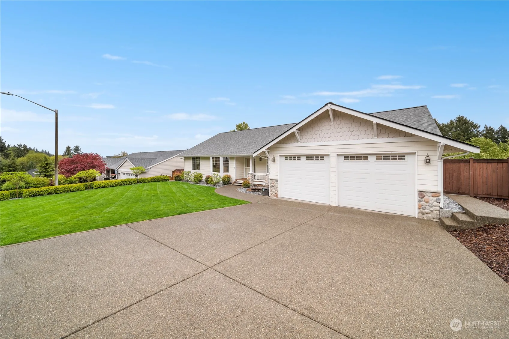 Welcome to your meticulously upgraded home in a secure gated community, now featuring a new roof for lasting elegance and protection. This splendid property showcases a primary suite with direct access to a double deck, offering serene Orting Valley views ideal for both tranquil mornings and entertaining evenings. Nestled on a spacious 1/3 acre lot, the outdoor spaces include well-appointed decks and a patio, complete with a BBQ gas hookup for upscale outdoor dining. Inside, the home offers an open kitchen and great room layout, a den accented by French doors for privacy, and two additional bedrooms linked by a full Jack & Jill bathroom. Equipped with air conditioning, this home combines comfort with refined living in a picturesque setting.