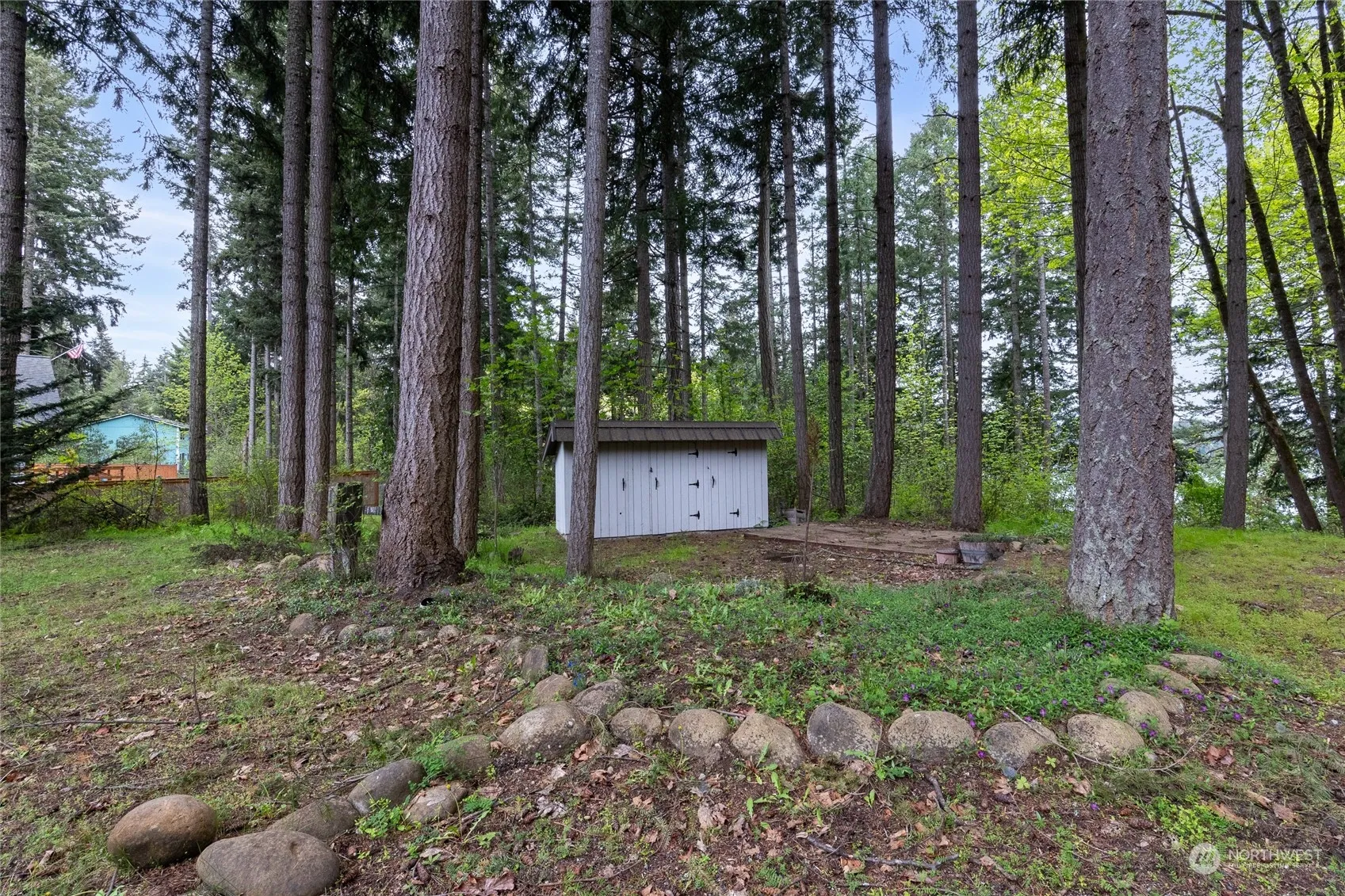 All the work has been done for you on this perfectly peaceful lot in Clearwood with high bank views of Clear Lake! Build your dream home or use for recreational purposes. 3-bedroom septic installed, water and electricity on site (including 220 hookup perfect for RVs), and survey completed! Enjoy the deck with beautiful lake views and storage shed with half bath. The neighborhood offers countless trails through the woods, 6 beaches, boat launch, plenty of parks, pickleball court and gated entry. There is a trail accessible from the property that takes you right to Sunset Beach and the community pool & hot tub. This is a rare opportunity to own a lake view property and not have the hassle of installing utilities or paying for a survey!