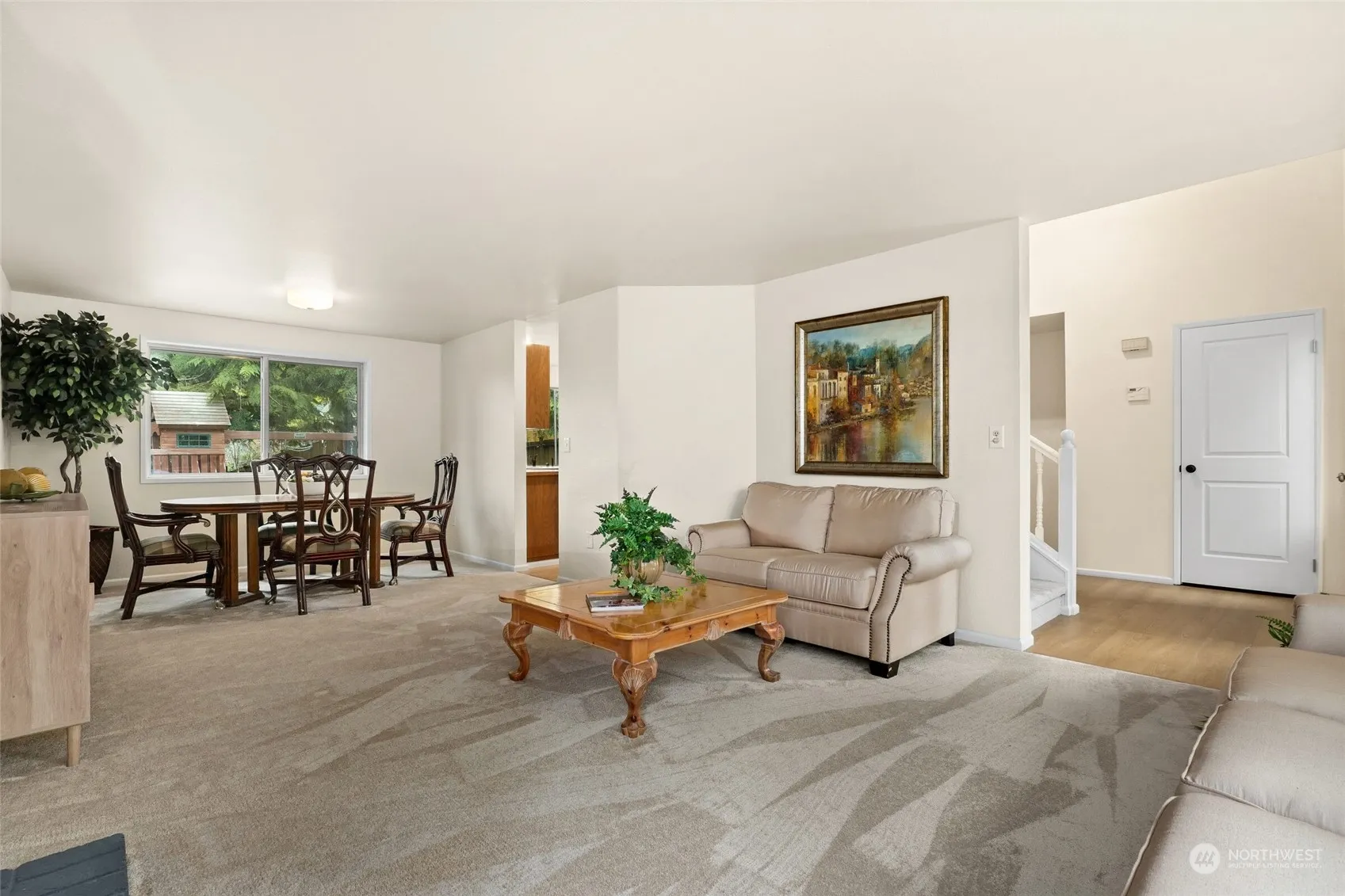 Wonderful, updated Craftsman home in tranquil Duvall Hills. Dramatic high ceiling foyer opens to new hardwood like floors throughout home. Fresh interior and exterior paint, new carpeting and new tile floors accent the warmth of the living space. A formal living room with gas fireplace flows to large dining room with picturesque view of backyard. Bright country kitchen boasts new stainless-steel appliances, recessed lighting, delightful bar seating and fabulous windows to capture seasonal views. Open family room from kitchen with glass panel door access to huge backyard patio. Upper-level primary bedroom with ceiling fan and full bathroom. 2 upper-level spacious bedrooms and hall bathroom. The backyard is fully fenced with evergreen views.