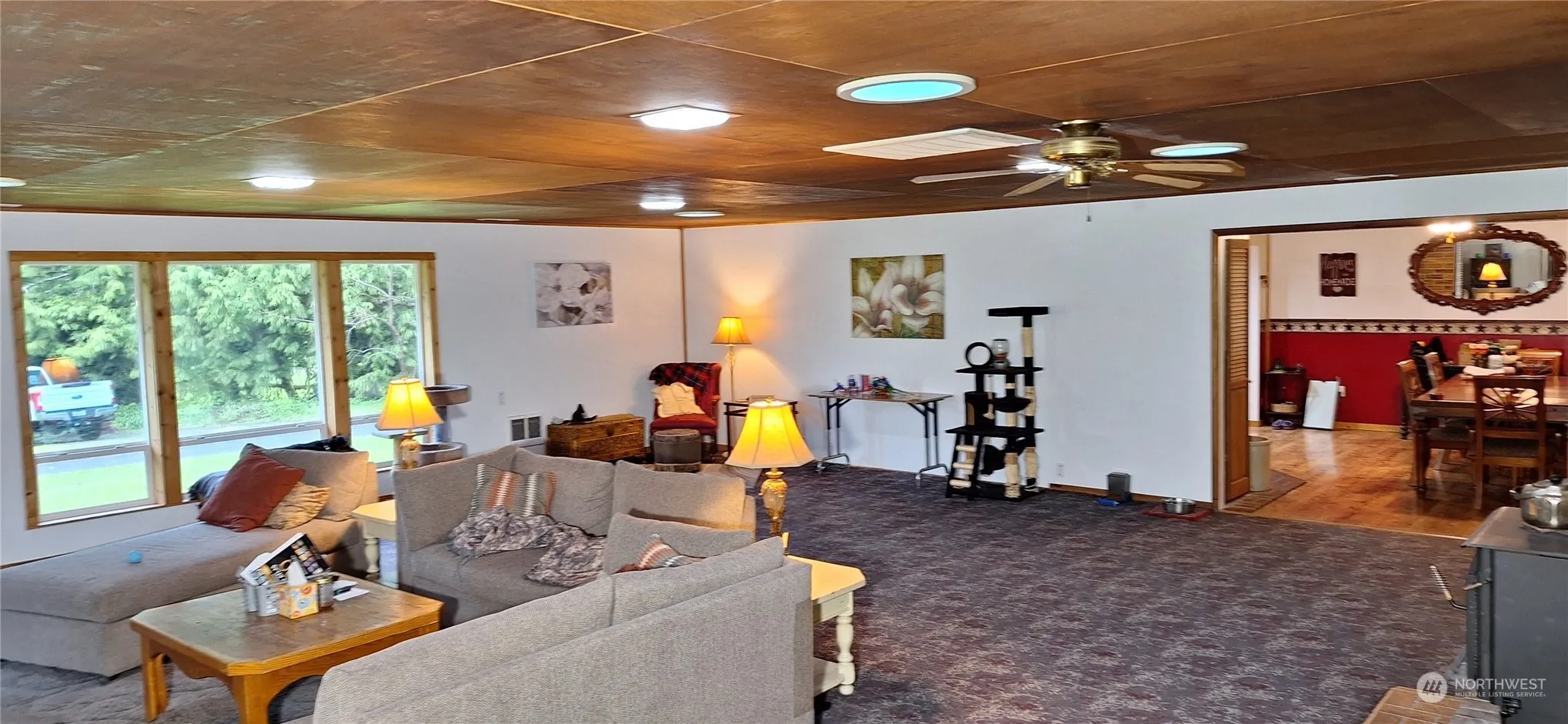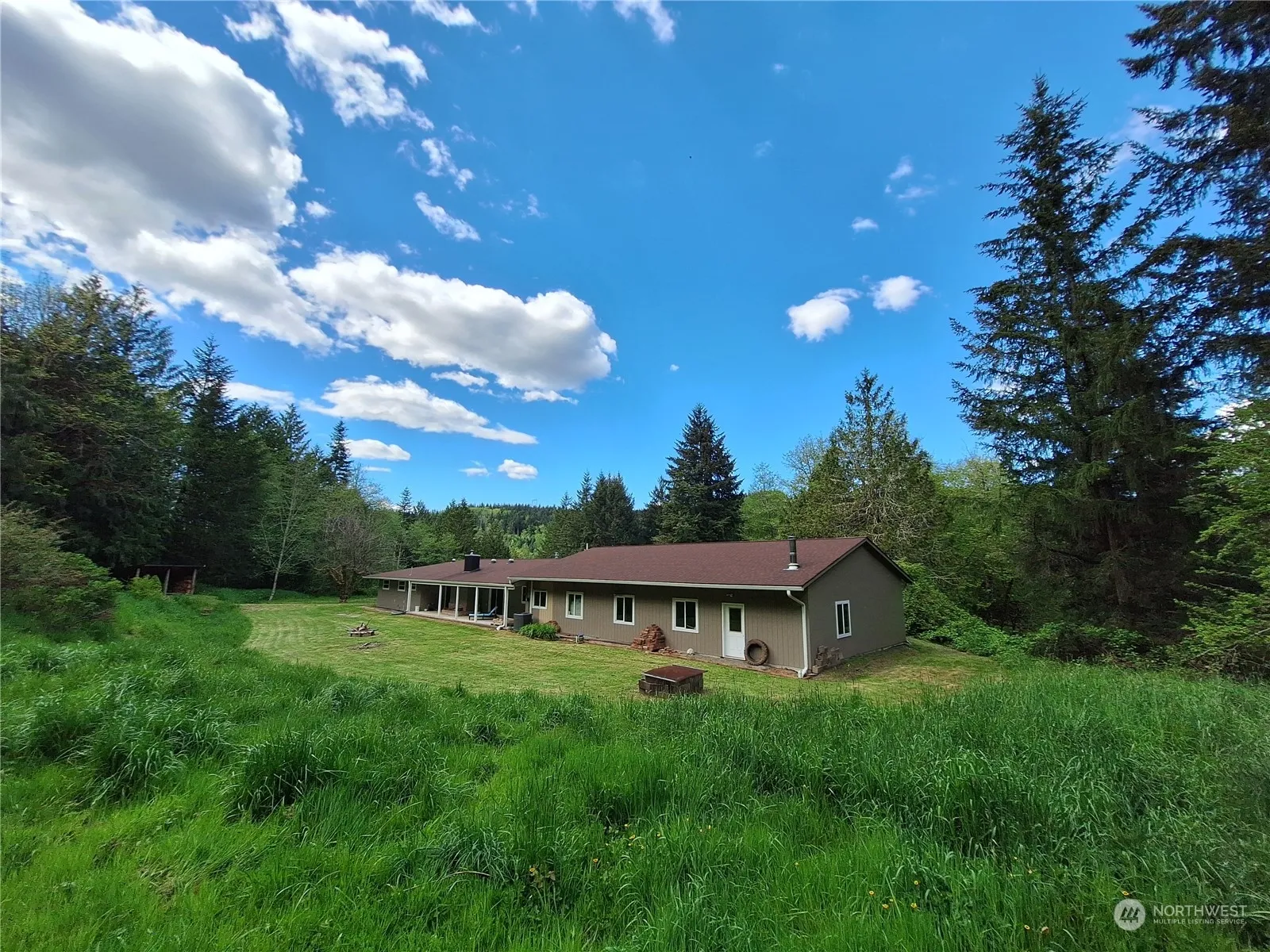 Home on 13 private acres. Woodshed, attached carport, barn, pump-house and RV pad with electric/water hook up. Three water sources include two wells and a spring. Wood, electric, gas heat & heat pump, its all there. Room for a shooting range, domestic animal range & wildlife are all in range. Fruit trees, garden space and mature timber round out your 13 acre estate. Huge kitchen and dining area to accommodation multiple cooks. Dining room opens to a massive living room with passive solar & wood stove. Wide hallway leads to the West wing where you will find 3 bedrooms & bath. East wing has a second bath and a Huge rec room complete with wood stove. Could be separate living space. Check out the road to the barn. Buyer to verify all.