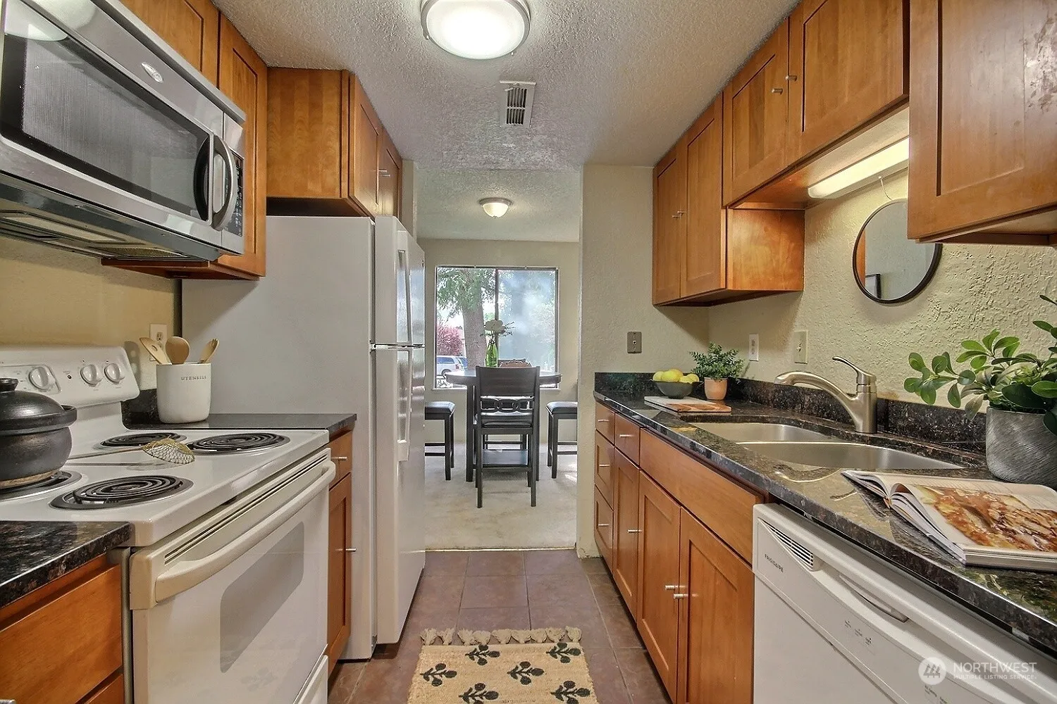 **Estate Sale** Charming 2 bed, 2 bath condo located in the heart of Kent. Spacious 982sqft with ample storage and updated kitchen. Wood burning fireplace and a well laid out floor plan. Condo is nicely situated, ground floor, end unit in a quiet building. Olympic Skyline Condo complex was established in 1981, a large community and grounds, playground and plenty of space to get out and move around. Great investment with no rental cap, close to shopping, Kent Station and freeways.