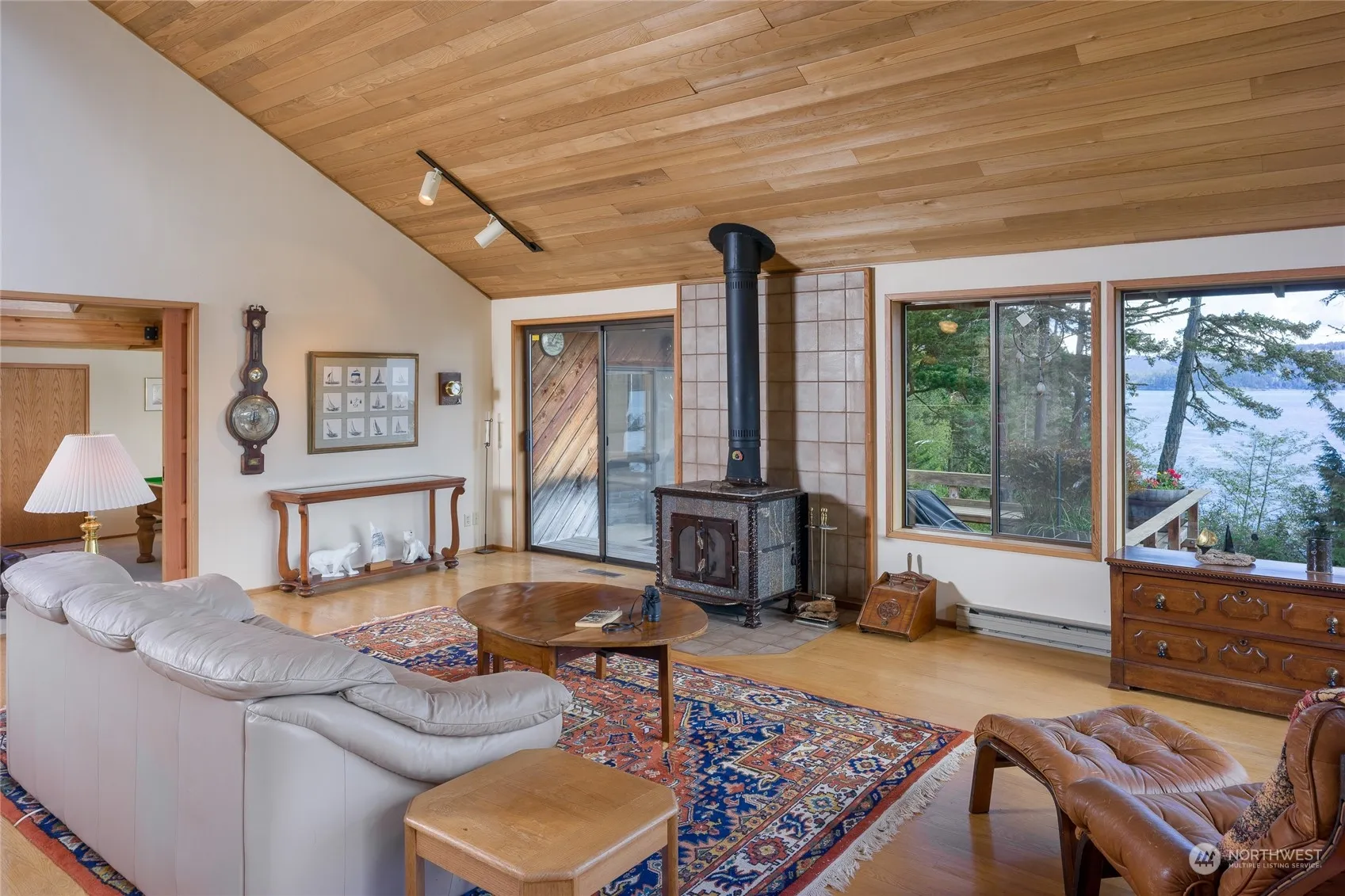 RARE, DEEP-WATER DOCK, Two Waterfront Homes & buffered privacy from this 17+ ac island retreat. Along terraced, rocky WF is 40 ft deep-water dock with 50 amp power, water + mooring buoy. Airy main home features vaulted cedar ceiling, fir trim, oak floors, build-in cabinets bookcases, snooker table room, 2 airtight stoves, glass hot tub room & deck to enjoy marine & island views. Split level, 2 bd/2 ba Guest House also has vaulted ceiling & view deck. Both Homes feature concrete tile roofs, cedar siding & enviable panoramas. Detached 2 car garage with separate workshop and wood storage. NW landscaping. Seasonal creek crisscrosses easily assessed mature woods. Set on 3 separate tax parcels. Near Lopez Hill trails.