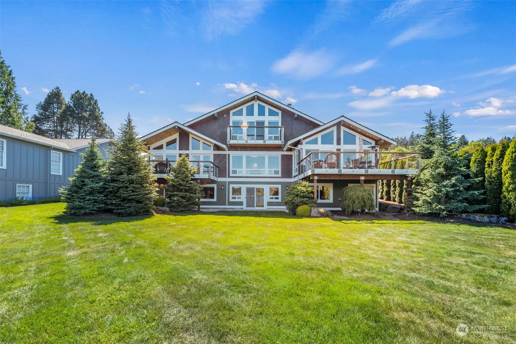 Exquisite Waterfront Home lovingly built by the owners. Breathtaking Views w/sightings of Whales, Dolphins ,Seals, Bald Eagles etc. New Bulkhead in 2024 w/beach for easy access to the water plus dock approval. Expansive windows that frame the views of Hales Passage, making it light & bright & a delight to call home. Huge Great room for entertaining & fantastic kitchen that’s a chefs dream. Lge office & bath all on the main level. Primary w/bath on upper level, family room, 2 beds & 2 baths for guests on lower level. ALL rooms have great views of the water. Super yard w/garden space & plenty of lawn for yard games & fun. Exterior storage room for yard equipment/water toys/games. So many extras make this a “MUST SEE” home NO SHOW TIME APPTS