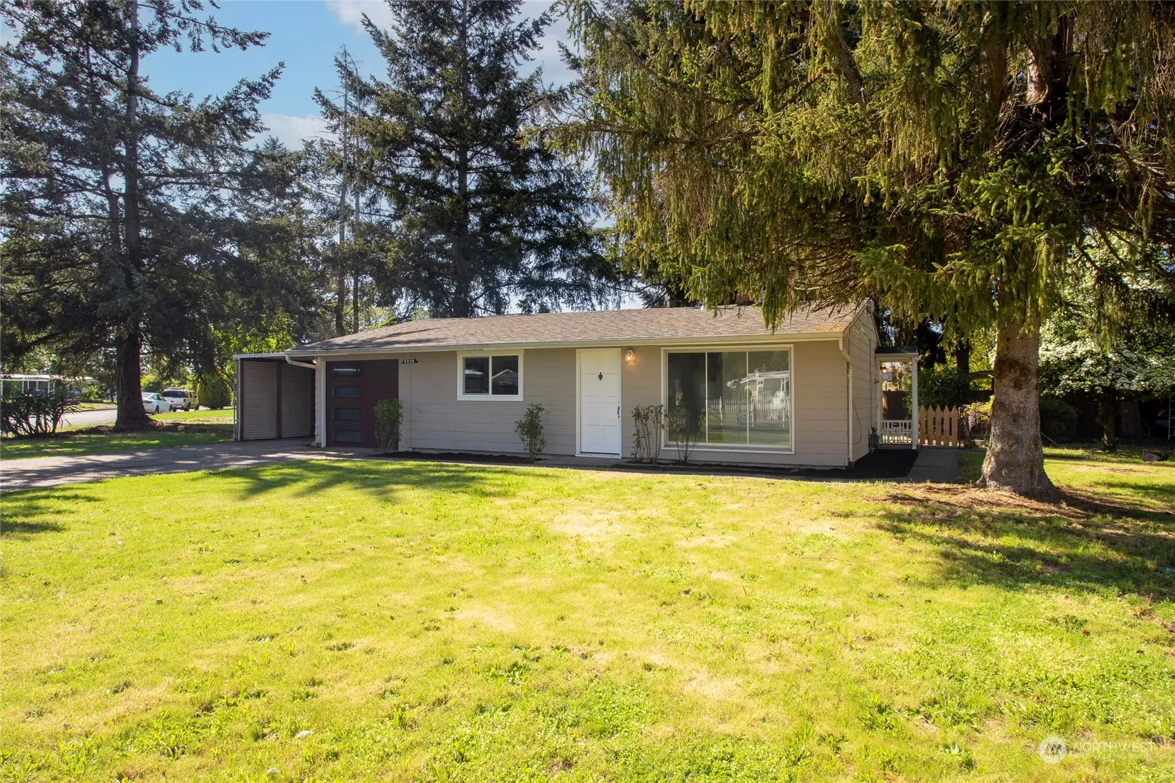 Welcome Home. This adorable remodeled rambler sits on a huge corner lot. Features 2 good sized bedrooms, full bath with new vanity, toilet and lighting. Enjoy the brand new low maintenance flooring, paint, light fixtures, counters tops and painted cabinets. This home features both covered parking as well as a 1-car garage with brand new insulated garage door with remote and security camera. Great sized front yard and fully fenced back yard with covered patio perfect for entertaining. Close to all the amenities of living in Lakewood and literally minutes from I-5 and JBLM. Perfectly priced starter home or add to your rental portfolio. Schedule your showing today.