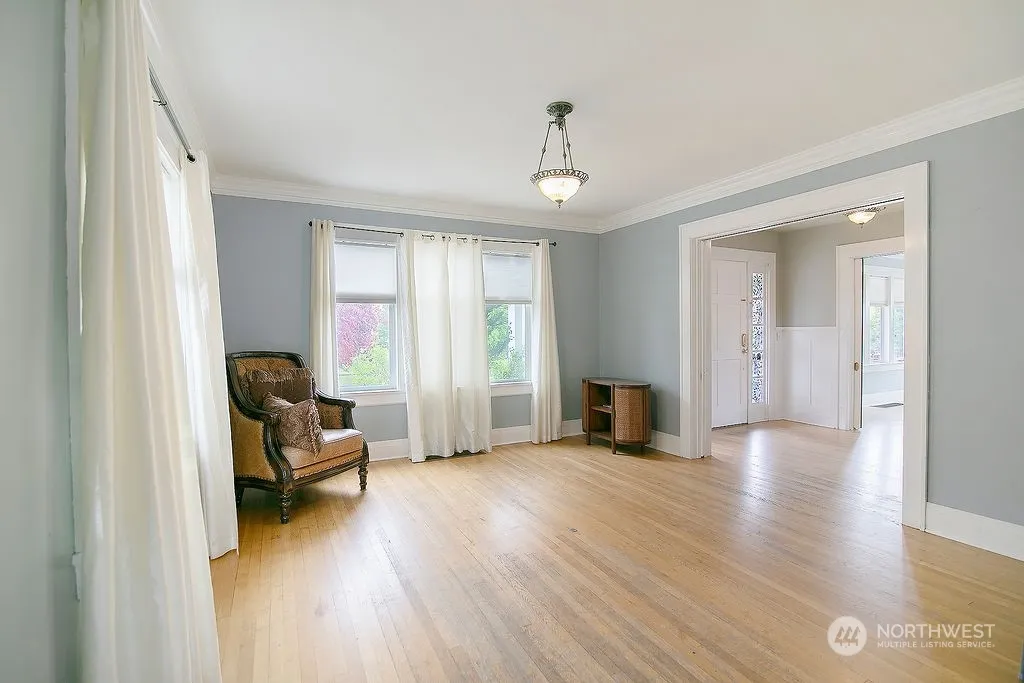Centralia — Heart of Town — Charming Character — 4 Bedroom / 3 Bathroom (2 are Updated) — Large Corner Lot — 4612 Sqft — Living Room w/ Fireplace — Updated Kitchen w/ Eating Area PLUS Formal Dining Room — Primary Bedroom w/ French Doors to Deck & Walk-in Closet — Built-ins — Laundry/Mud Room — Hardwoods — Sun Room — Potential for More Rooms in Unfinished Basement — Covered Porch — Detached Garage — Patio — Shed — Landscaped — Fenced — Garden Area — In-Ground Pool — Climbing Play Set — Sidewalks — Alley Access — Easy Access to Highway for Commute to PDX/Vancouver or Olympia — Minutes to Town