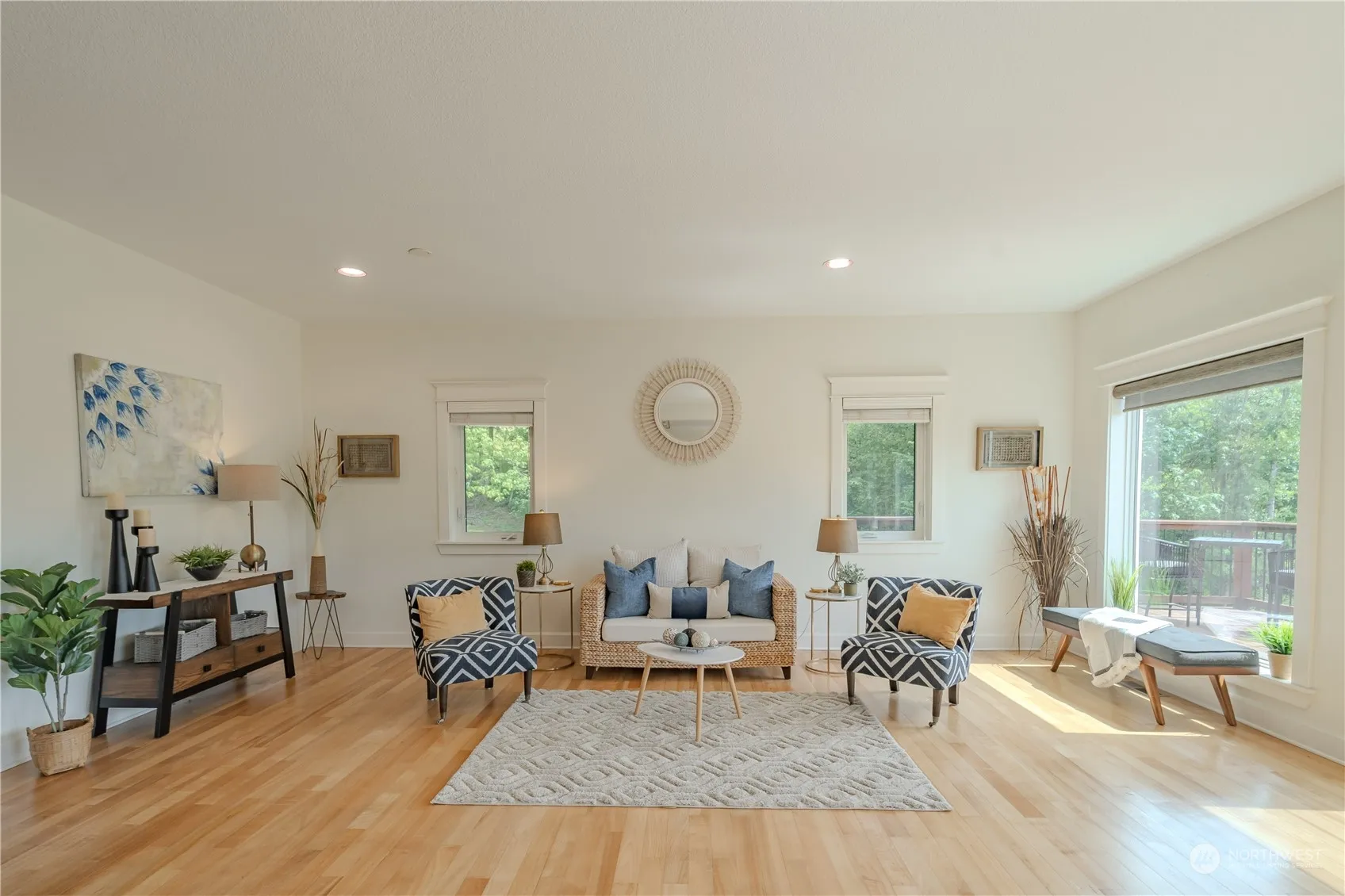 This luxurious community of seven custom homes offers breathtaking territorial views and stunning sunsets on each expansive five-acres. The main floor features a contemporary kitchen, a great room, and private office space. The upper floor boasts an updated primary suite, two guest rooms, and an entertainment area with a built-in bar and viewing room. The lower level provides additional living space, a bedroom, full bath, and storage, ideal for multi-generational living or separate quarters. Storage area easily converted to kitchenette! With multiple decks and numerous upgrades, this home is perfect for discerning buyers seeking elegance and versatility. Don’t hesitate to request the amenity sheet for a comprehensive list of features.
