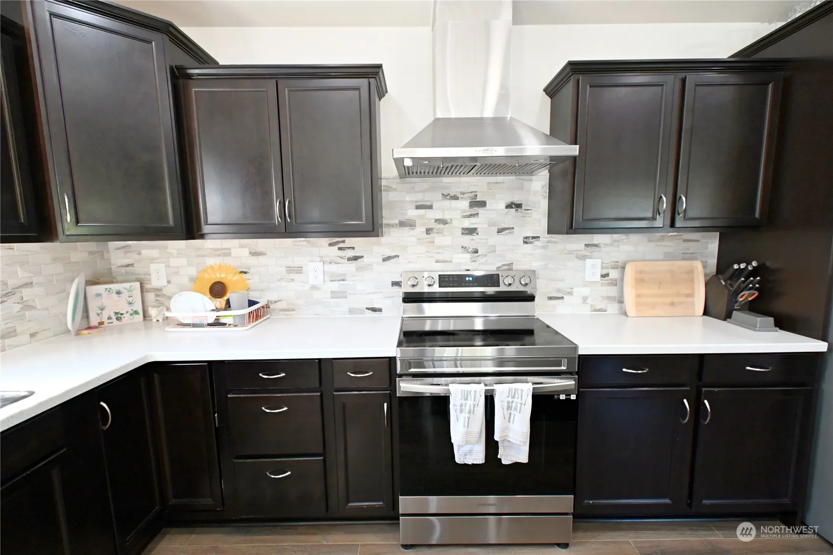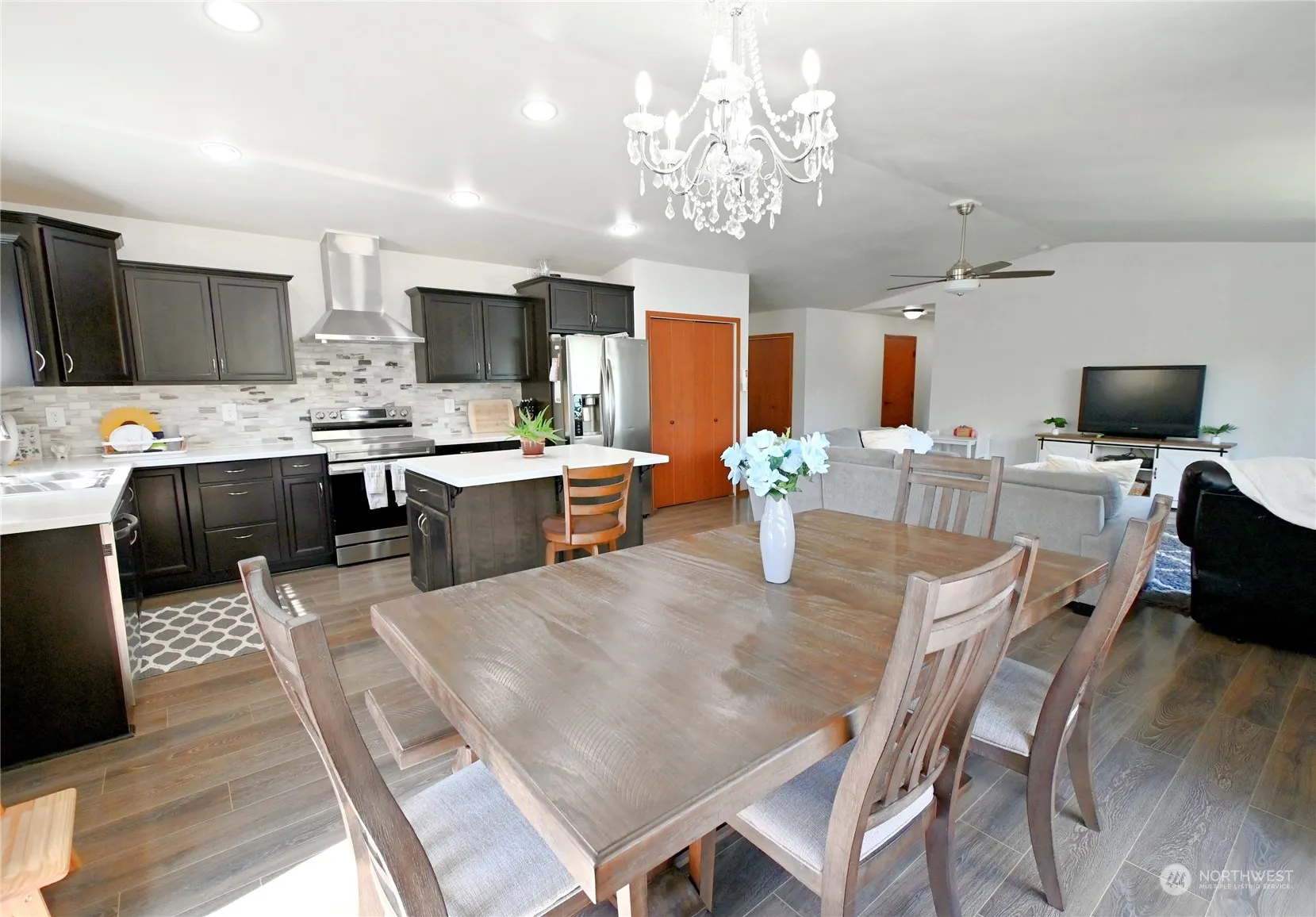 This beautiful stick built handcrafted home features three bedrooms, two full baths, and an attached two-car garage. Its open-concept design seamlessly integrates the dining room, living room, and kitchen featuring a stylish island and solid surface white quartz countertops. Abundant storage with a pantry, laminate flooring throughout. The primary suite offers a spacious walk-in closet and a generous bathroom. Ample windows provide abundant natural light and showcase views of the Cascade Mountains. Fully fenced backyard with a patio ready for great summer BBQs. Situated within walking distance of Silo Park and downtown Concrete. Additional features include a heat pump, and no HOA fees. Come, make this charming home yours today!