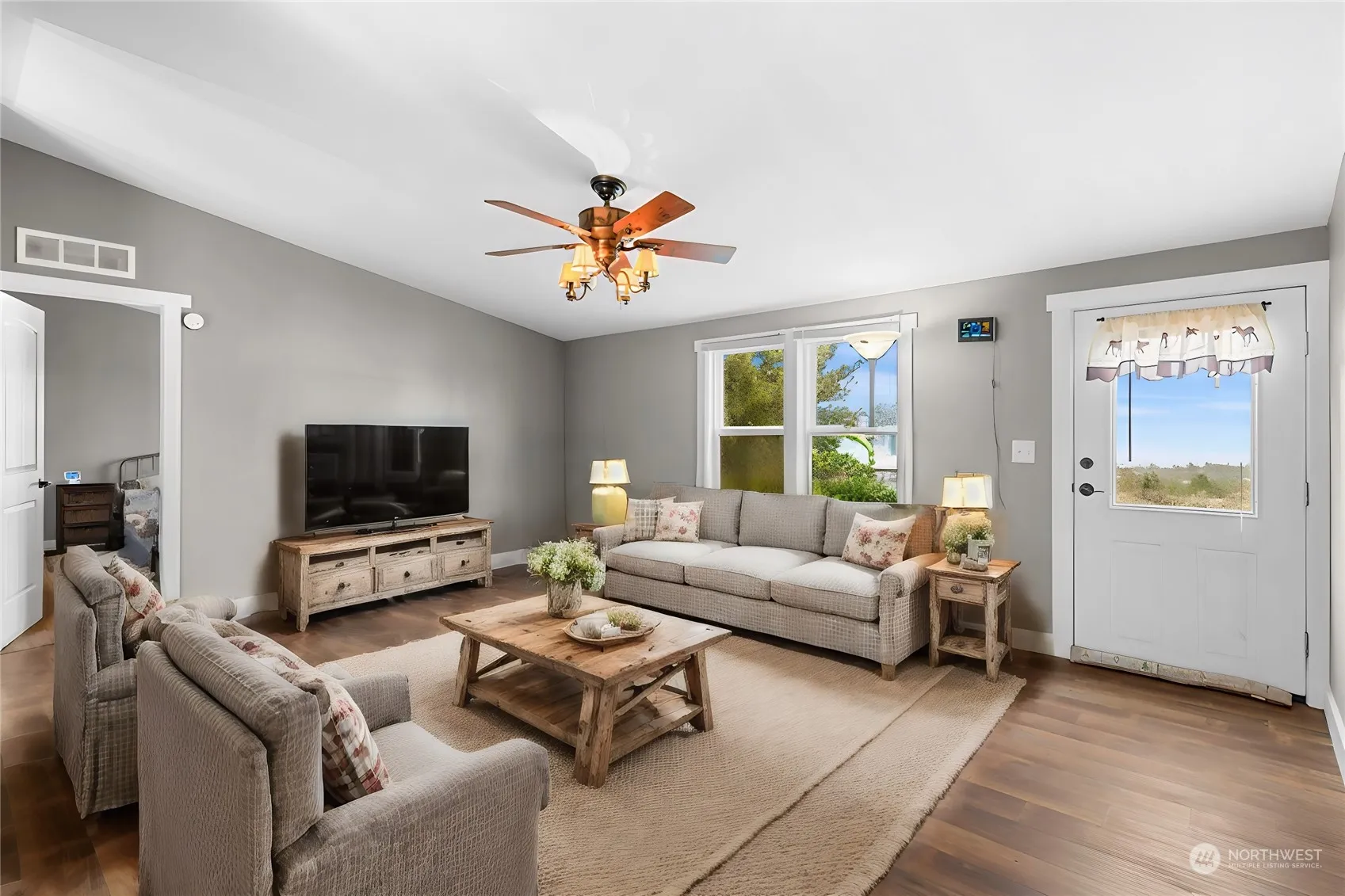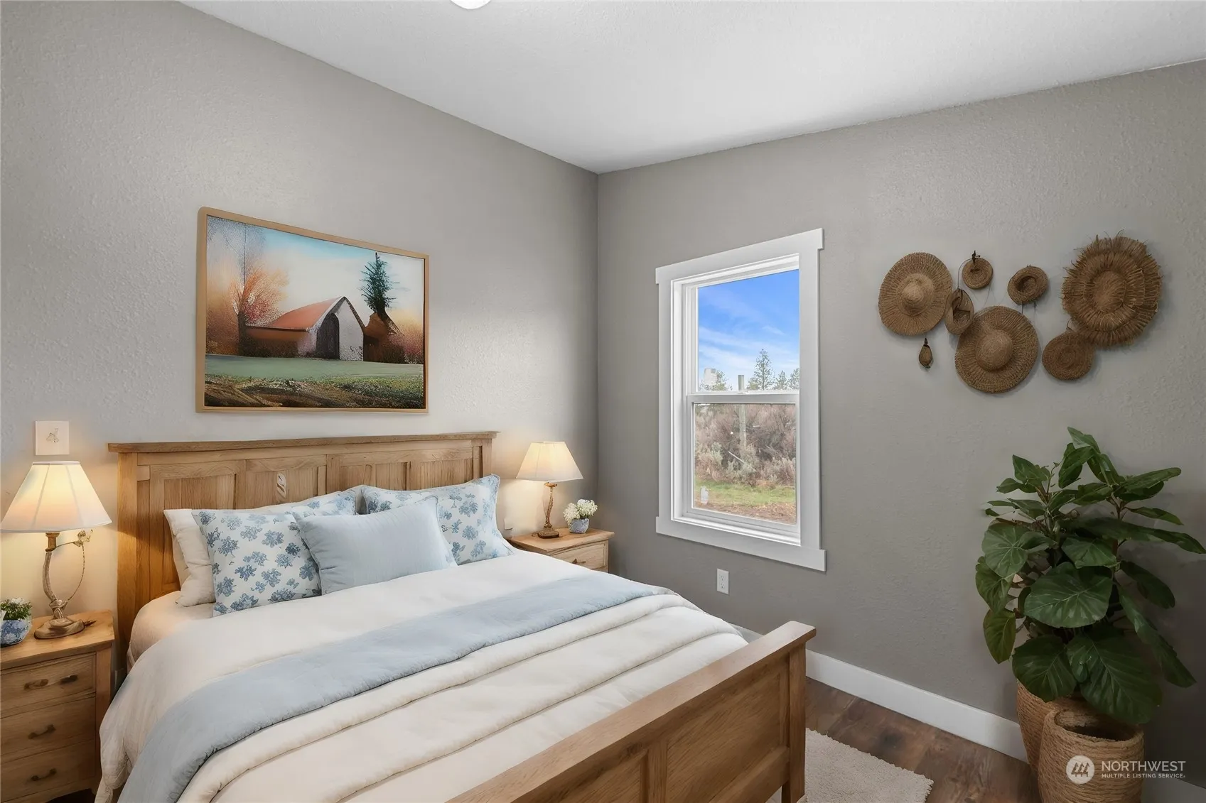 Embrace country living in this updated 3-bedroom, 2-bathroom manufactured home set on 5.25 acres. The property features a large, fully insulated 4-car garage and a spacious 1,700 sq. ft. Quonset hut shop with power and a concrete floor. The home has numerous updates, including fresh paint inside and out, new interior and exterior doors, LVP flooring, updated kitchen cabinets, new windows, and a brand-new roof. Ideal for horse and animal lovers, the property also includes a small barn to keep hay and animals dry. All appliances are included, with a newly installed stove. The property has a shared well with a strong 27 GPM output, and high-speed internet is available. This is a must-see property!