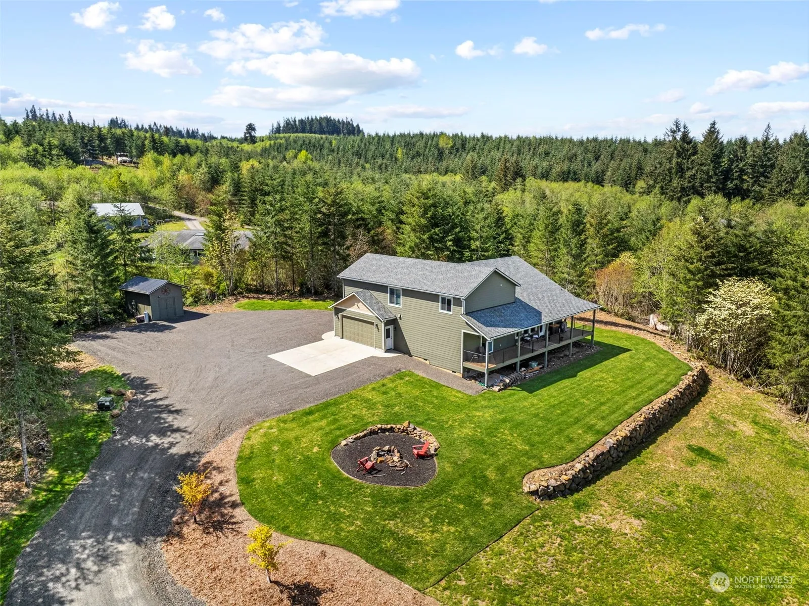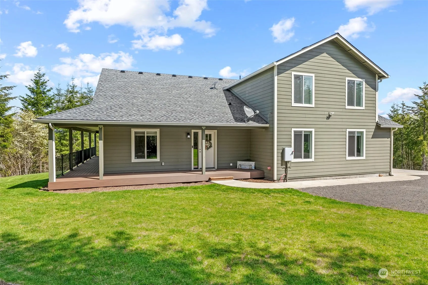 Welcome to serene country retreat! This newer construction home offers stunning mountain views and abundant natural light. French doors lead to a beautiful home office with custom cabinetry. Enjoy the warmth of earth tones throughout, along with custom cabinets, granite counters, and stainless appliances in the gourmet kitchen. Vaulted ceilings, custom fixtures, and oversized trim add elegance. Relax on the large undercover deck that wraps around to the front door or retreat to the main floor primary suite with a custom bathroom and walk-in closet. Upstairs features three spacious rooms and a massive den/family room. Additional highlights include ample parking, a quarter bath off the open living area, and main floor utility off the garage.