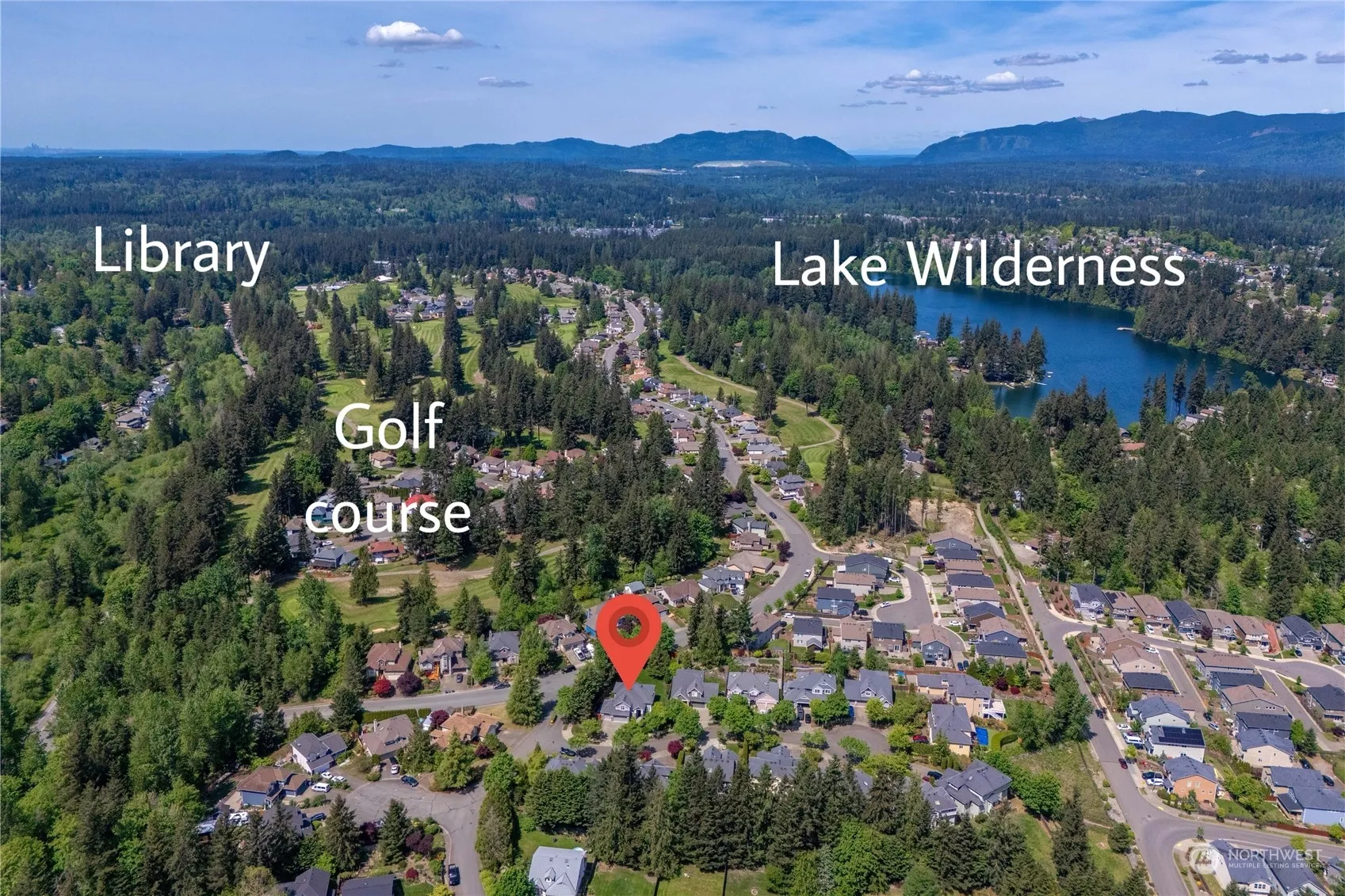 Welcome to Highland Greens, nestled on serene quarter-acre lot within a peaceful cul-de-sac of quality homes, steps to Lake Wilderness Golf Course! This exquisite home boasts a 2-story entry & living room and an open great room with large windows that showcase the backyard. The island kitchen is equipped with stainless appliances, including a wall oven & adjoins the family room with custom-built cabinetry. The main floor offers an office. Upstairs, the owner’s suite has a luxurious 5-piece bath & walk-in. 3 additional beds & a full bath. Enjoy the outdoors- newer deck, Sunsetter retractable awning & a large green lawn with a sprinkler system & double gate for potential boat/RV parking. 3-car garage w/storage! Short walk to Lake Wilderness.