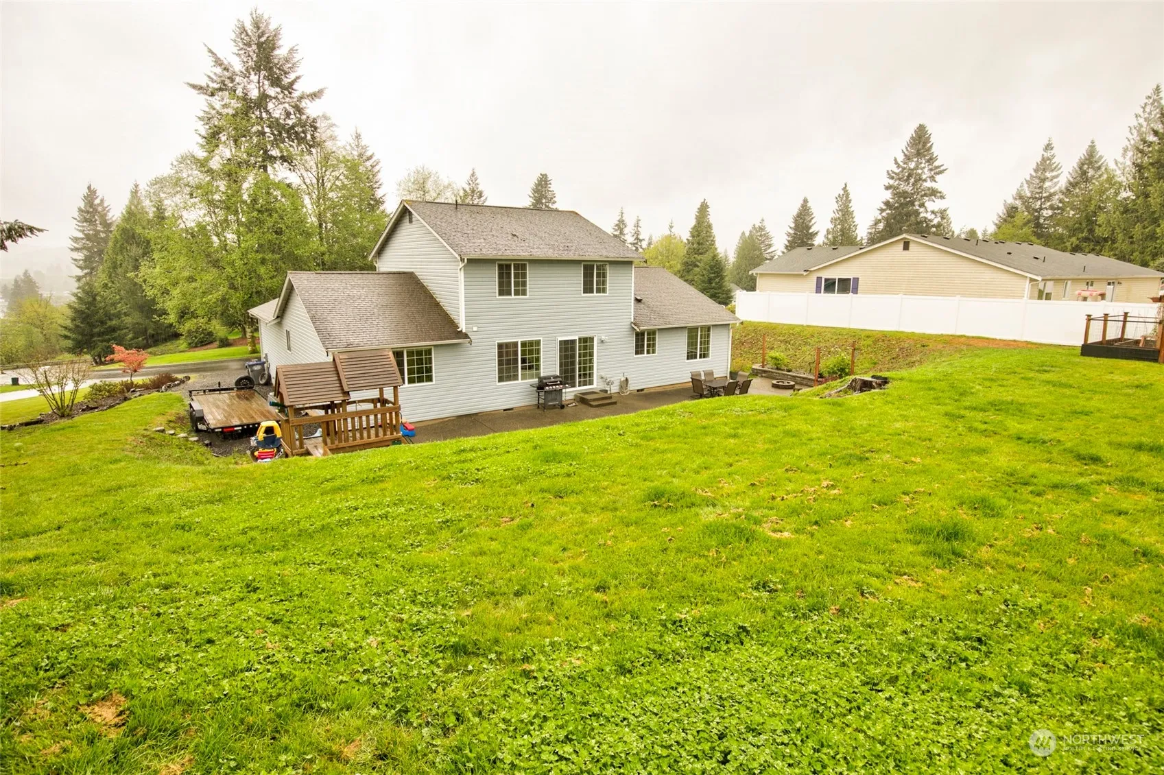 Spacious and well maintained home on the sought after Strawberry Hill. Nestled in a quiet neighborhood with a dead end cul-de-sac and just a few minutes away from all amenities. Home boasts multiple living room spaces on the main floor with a beautiful electric fireplace, kitchen with eat-in bar, dining room, den/office, half bathroom, laundry, as well as the large primary bedroom with en-suite & walk-in closet. Vast windows & sliding glass door off the living room overlook your backyard that is perfect for entertaining with a large patio, firepit, and more. Upstairs you will find 3 additional spacious bedrooms and a full bathroom. Don’t forget the 2 car garage that is a big bonus! This move-in ready home with a lot to offer is a must-see!
