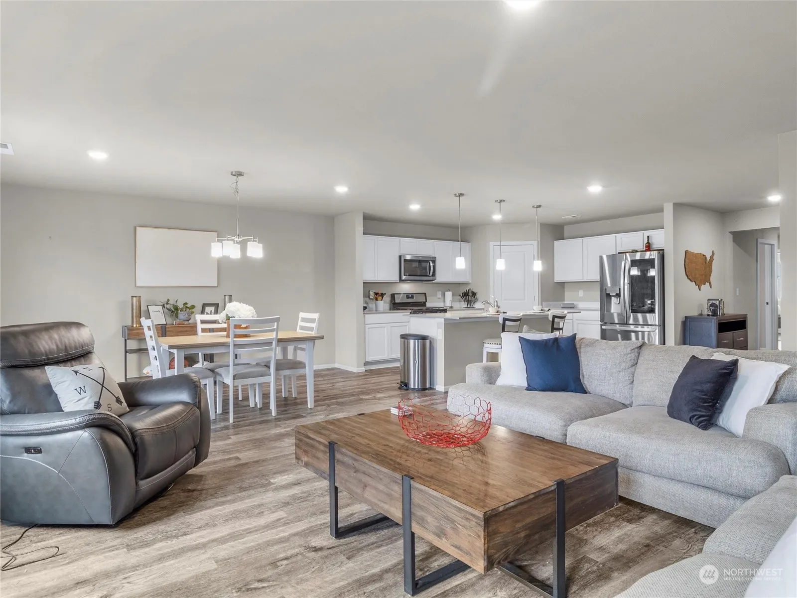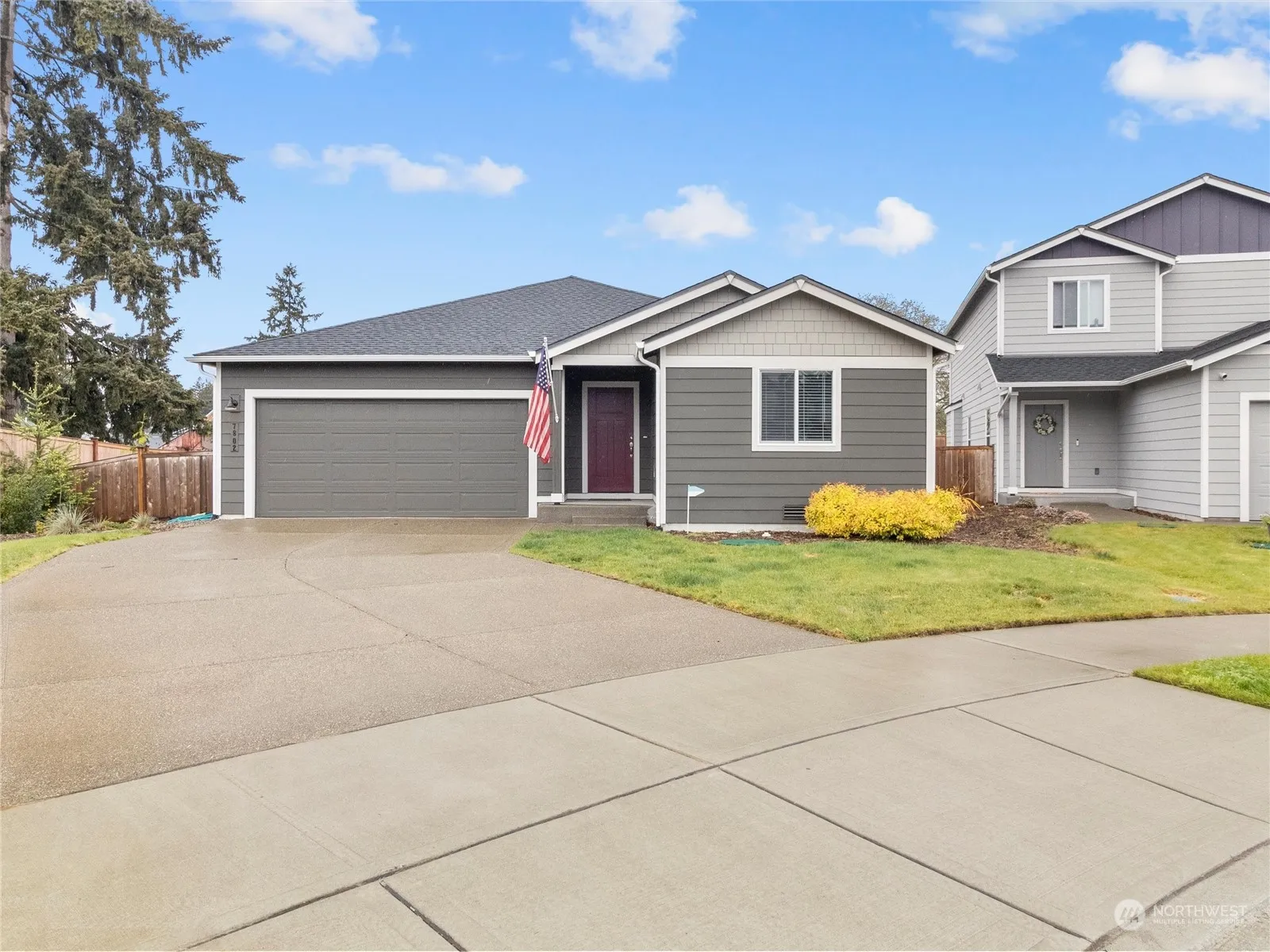 Single story living at it’s best. The open floor plan, 3 spacious bedrooms, 2 bathrooms and modern amenities like gas appliances and quartz countertops make it an inviting space for both daily living and entertaining guests. Location at the end of a cul-de-sac creates a quiet living environment. Rear covered porch is a serene place to enjoy your coffee and peekaboo views of Long Lake. The location offers both seclusion and convenience, with easy access to JBLM and other amenities. With features like a rear fenced yard and AC for those hot summer days, every comfort has been carefully considered, promising a cozy and enjoyable living experience.