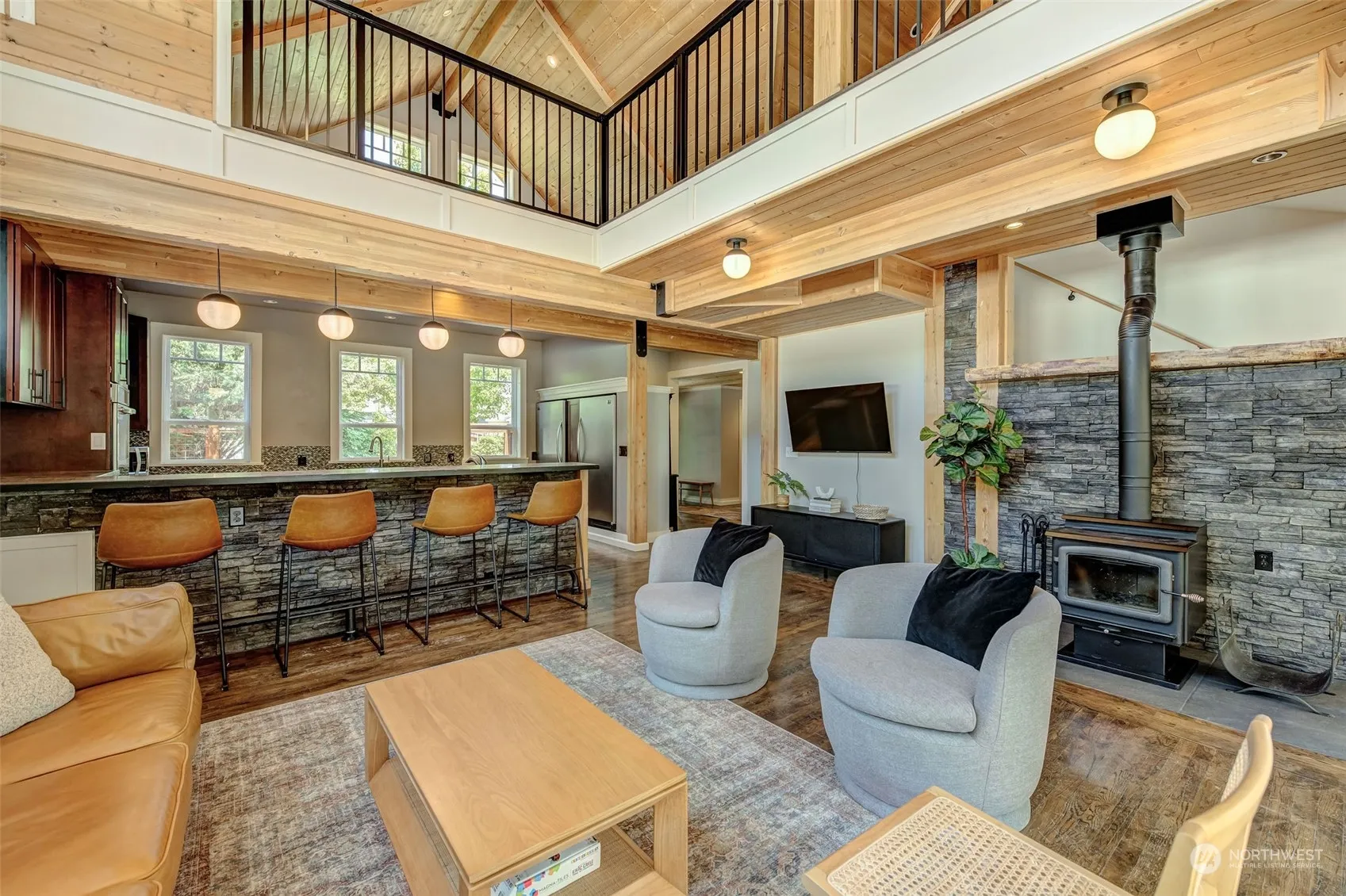 Experience the ultimate lifestyle of lakeside living in this custom craftsman home nestled in the heart of Three Lakes Estates. Boasting ample space with over 4,600 sqft including a bonus area above the garage with separate living space & private access. Gorgeous woodworking detail, highlighted by exposed beams & oak hardwood flooring seamlessly blend with modern updates to create the perfect harmony of contemporary comfort. Pine-planked vaulted ceilings, a cozy wood fireplace, & large picturesque windows allow you to soak in nature’s breathtaking views & an abundance of natural light. Main level primary suite & 2 additional ensuites. Community amenities include: clubhouse, pool, boat launch, lake access, & more. 3 bed septic but 5+bedrooms