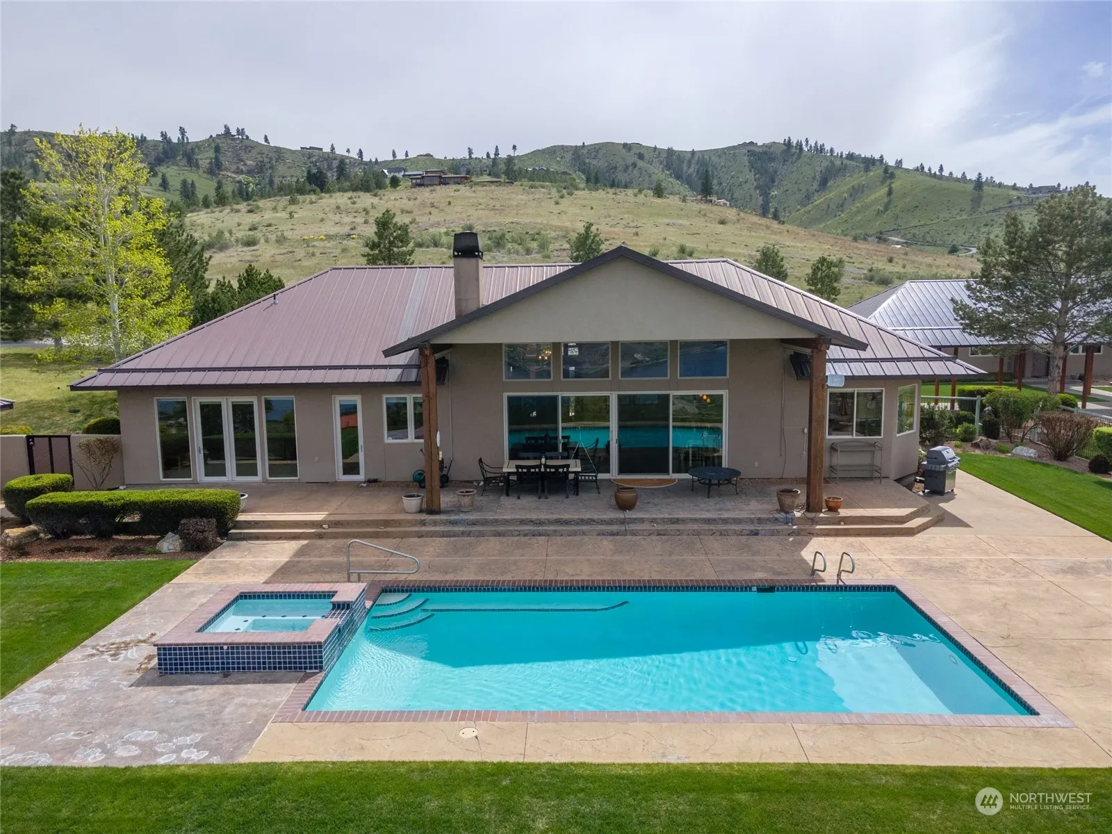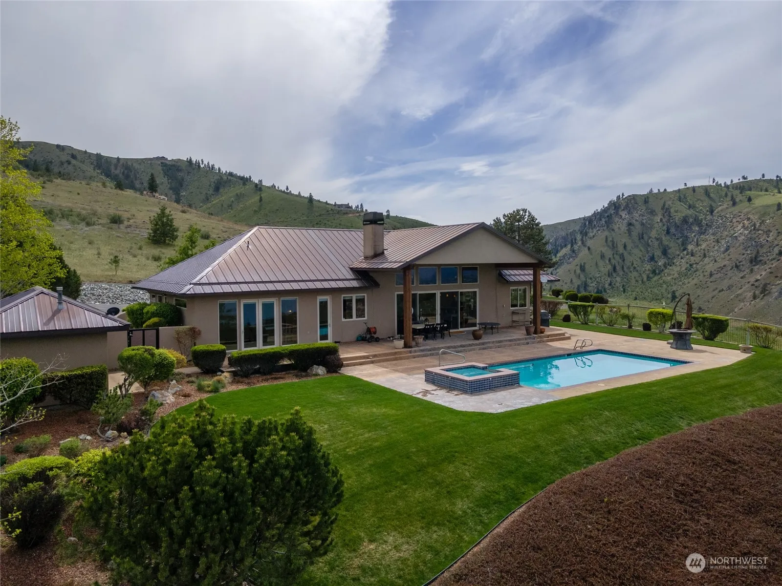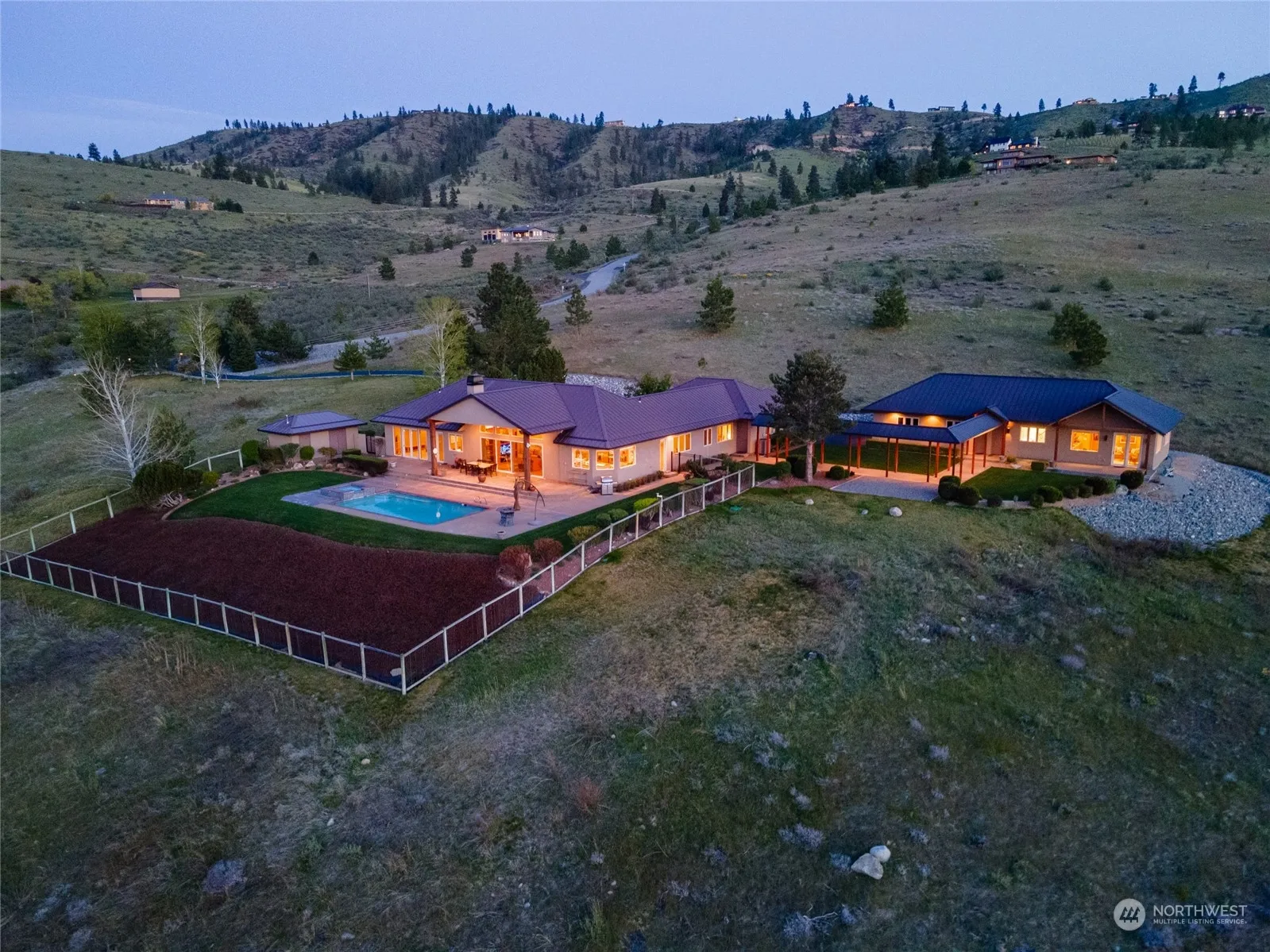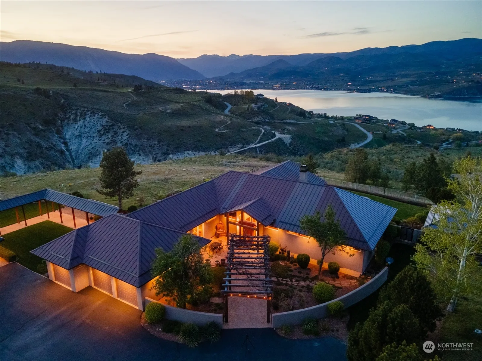 Welcome to 825 Hawks Meadow Road! Custom built home & guest home by Harkey Construction w/ just shy of 4,000sqft total of single level living! 20+ private acres of natural beauty & 180-degree views of Lake Chelan & stunning mountain views! One of the choice lots at the gated community of Hawks Meadow sitting in close proximity to Bear Mt Golf Course & just 5 miles & less than a 10-minute drive to downtown Chelan! Just a few of the many features include an inground pool & spa, beautiful mature landscape, trellised front entry way, & covered walkway from home to guest home. With tons of parking & a total of 5 garage bays & 1,700sqft of garage space, there is plenty of room for all your visitors & toys! Estate property in prime location!