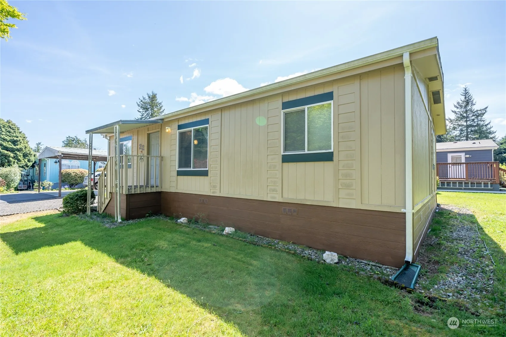 Take a look at this adorable 3 bedroom, 2 full bath home located in peaceful Rustemeyer Mobile Home Park, a 55+ community. Skylit kitchen has ample cabinet space and opens up to dining/living room featuring vaulted ceilings. Primary bedroom is complete with jetted tub and walk-in closet. Outside you will find a cozy enclosed porch, 2 storage sheds and plenty of gardening and parking space. Home has a newer roof and windows. Seller is offering a home warranty for extra peace of mind. All furniture and contents are included in sale. Water, sewer and garbage are included in space rent. RV storage is available. Clean, quiet and well maintained location just minutes away from town, ocean beaches, shopping and dining.