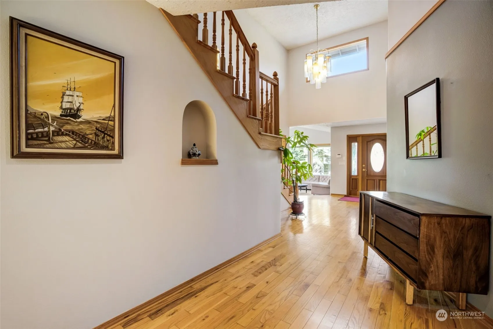 Welcome to your haven perched in a tranquil cul de sac, offering great views of the Columbia River, Portland’s skyline, & downtown. This paradise boasts walls of windows, flooding the interior w/ natural light. Step onto your lower deck, perfect for soaking in the panoramic views. Inside, H/W floors adorn the spacious living areas, connecting the open kitchen, complete with SS appliances & additional storage in the bar area. The main level features 2 bdrms & a bath, while upstairs, the expansive prim suite awaits, w/ its own private deck & sensational views. An additional bedroom upstairs ensures ample space & comfort for all. Enjoy a large 3-car garage, newer carpet & wide hallways w/ a prime location.