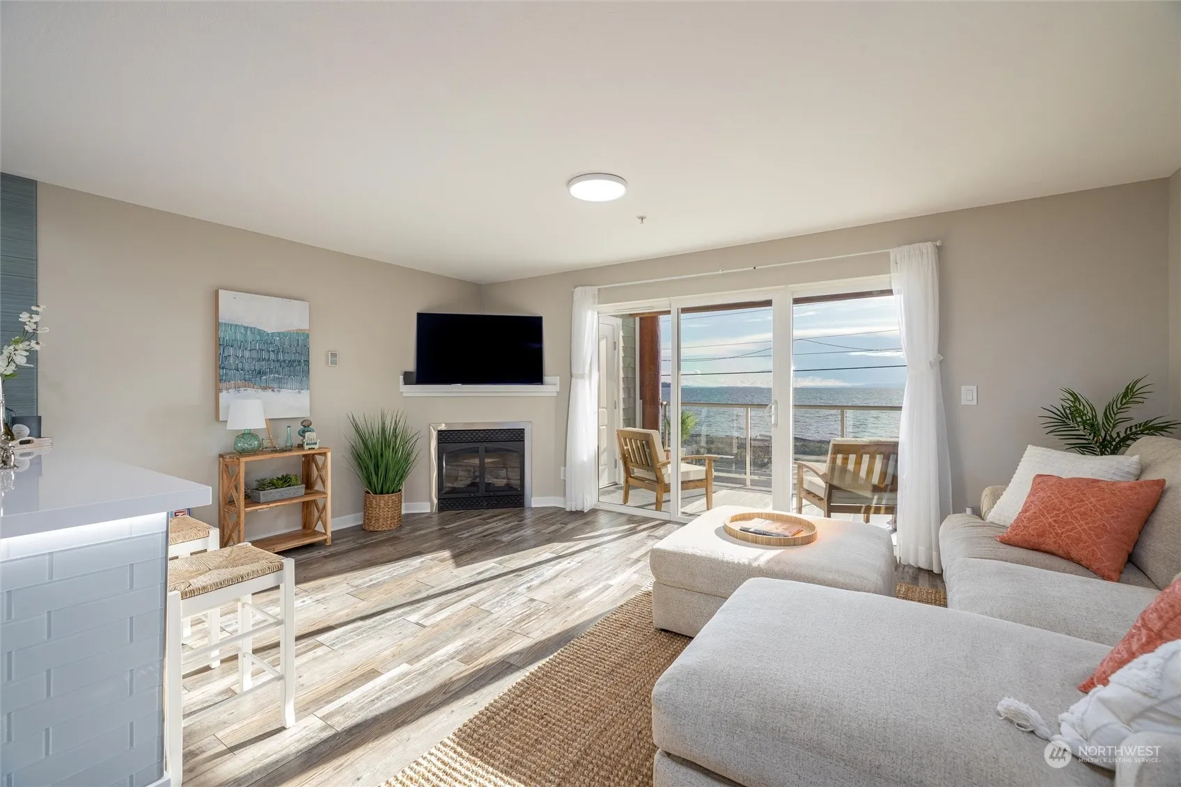Rare resale opportunity in the coveted waterfront condo complex, The Sands. This sun-drenched unit radiates PNW charm & the spot on details of the recent renovation will delight even the most discerning buyer. Enjoy the sweeping west facing saltwater views from your private deck or while strolling the walking path along Birch Bay Drive. The nearly indestructible LVP flooring, new quartz counters, on-trend white cabinets, tile wall & island backsplash & custom stainless steel finishes in the kitchen create a light & bright vibe that seamlessly connects to the living, dining & outdoor spaces. Bonus: in-unit washer & dryer! Nestled between Vancouver, BC & Seattle, WA…Birch Bay is a gem…this is Pacific Northwest living at its finest!