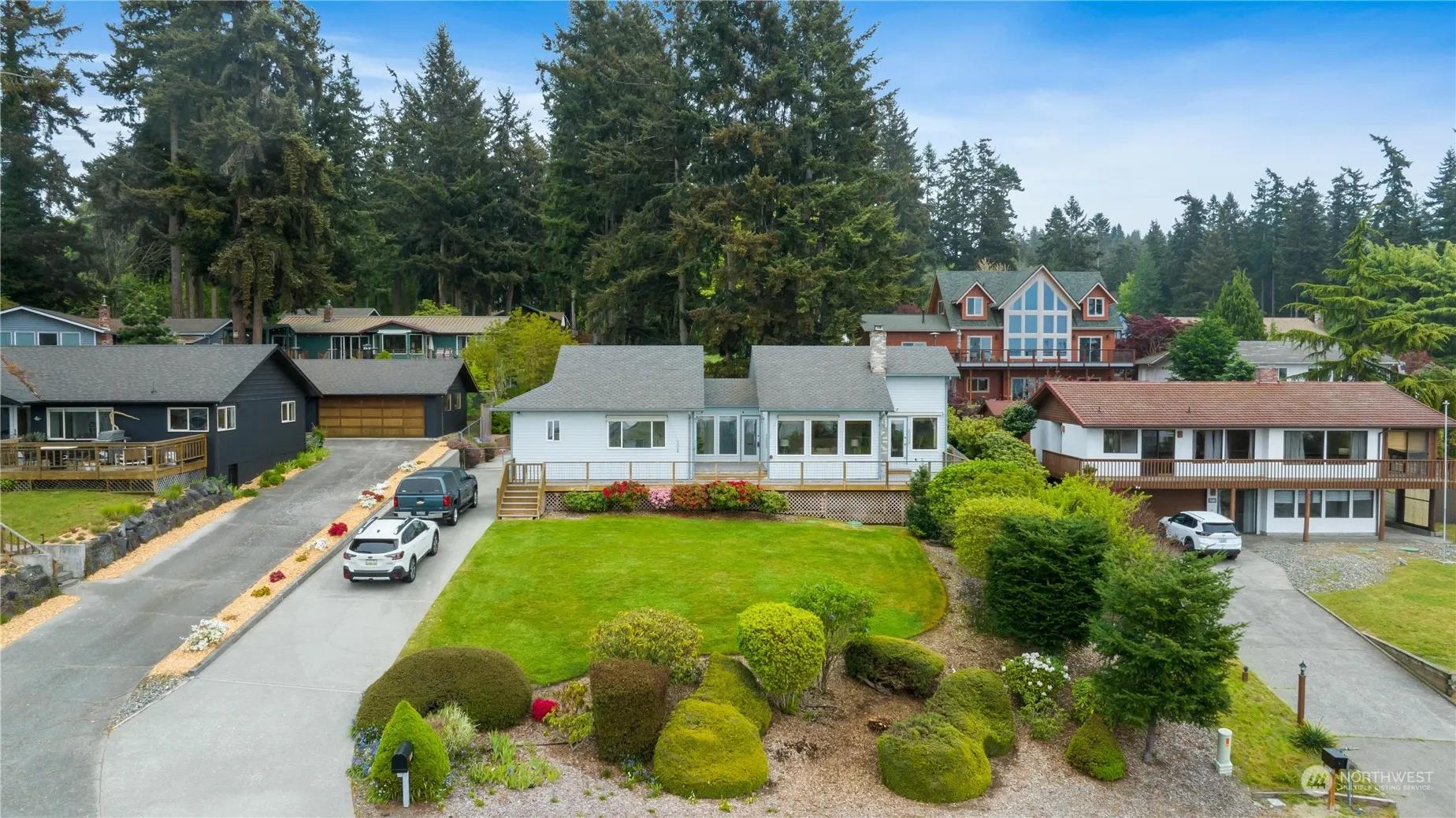Experience the epitome of island living in this delightful 3-bedroom, 1.75-bath residence nestled within the serene surroundings of Freeland! Privately situated in a cul-de-sac, this home exudes both warmth and allure on its double lot. Indulge in sweeping vistas of Mutiny bay and majestic mountains from the expansive windows and the recently constructed Trex deck, ideal for gatherings or serene contemplation. Step inside to discover newly installed wide plank flooring, a modern water heater, and upgraded heating systems, ensuring year-round comfort. Outside, the meticulously maintained garden and lawn add to the property’s allure. Just a brief stroll away lies Robinson Beach, beckoning with endless coastal delights. New AC split.
