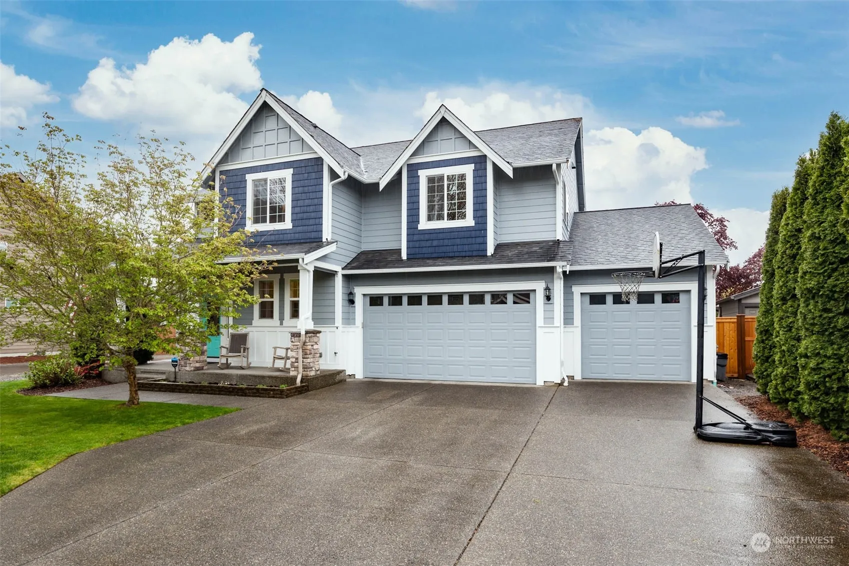 This well-maintained charmer is move-in ready! The covered porch welcomes you into the formal living room boasting hardwood floors & elegant millwork. The generous kitchen features a gas range, butler’s pantry & gorgeous quartz countertops. Dining & family rooms overlook the beautiful low-maintenance landscaping. Entertain on the patio, play on the lush lawn, or relax with the garden beds. Upstairs, the bonus room is a great flex space for home office, gym, playroom, etc. Primary suite is a lovely retreat with 5-piece private bath. Laundry & 3 more bedrooms down the hall. The 4-car garage provides plenty of storage space; tandem bay opens to the back yard. With central A/C in a quiet corner of Sumner but close to town, this is a gem!