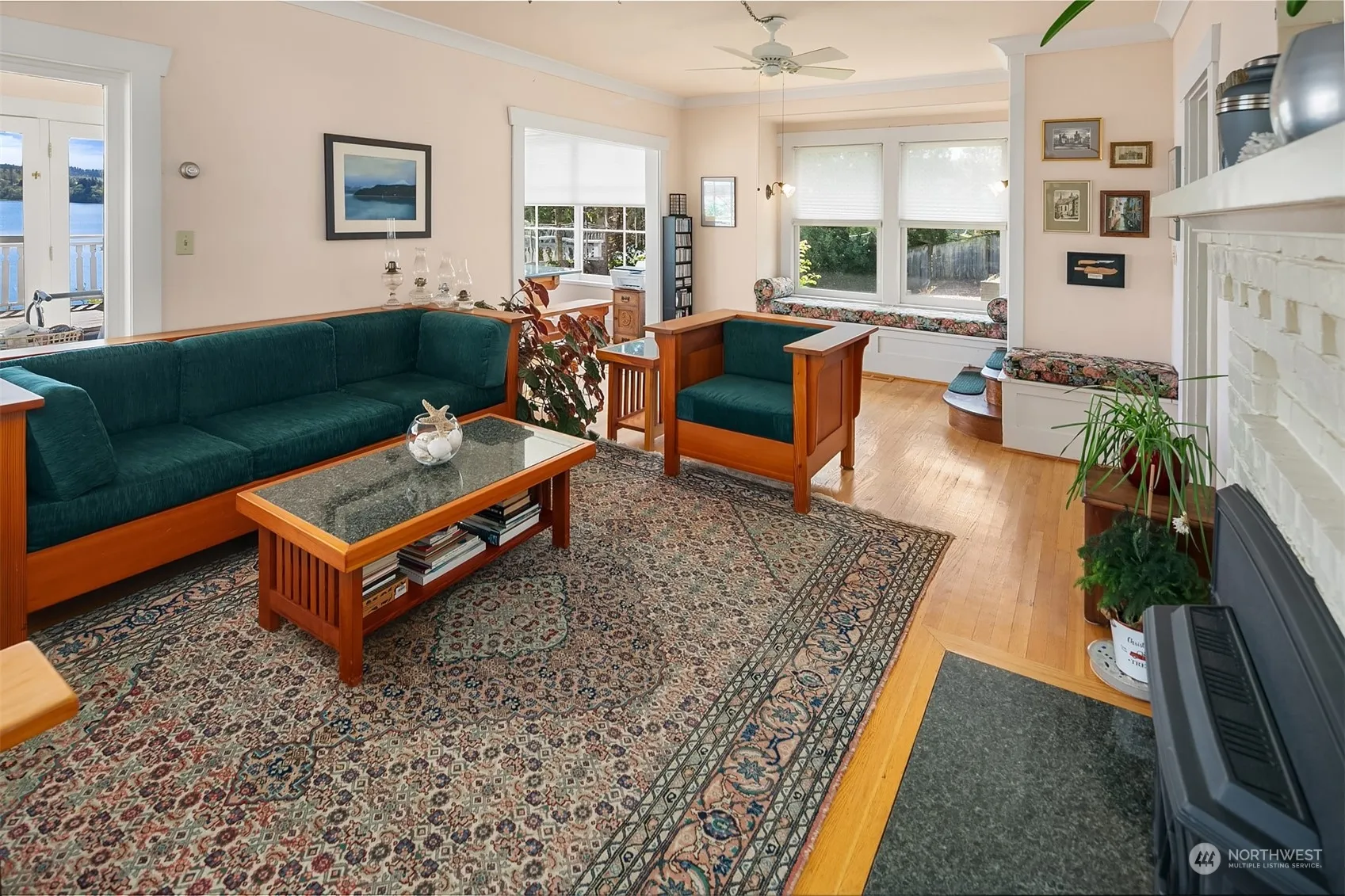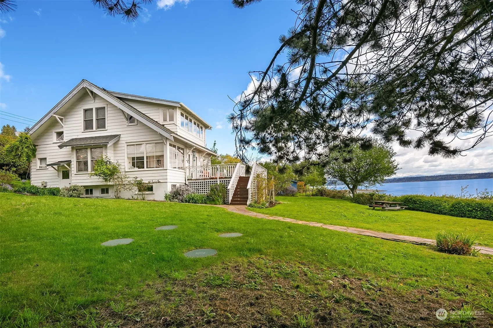 On 1.1 private acres of grassy, level waterfront in the heart of Ellisport, this 1918 treasure is an emotional step back in time to Vashon life long ago. Minimal updating of its 1540 sq ft. is consistently in keeping with its early 1900’s Craftsman charm. Recent septic revision & newer roof join original floors/millwork throughout, 2 bedrooms, 1.5 baths, sensitively updated kitchen, 800 sq ft. basement, covered 1-car parking. (easily converted to 2). Versatile second floor “sleeping porch” shares the same expansive eastern views of Sound & Mt. Rainier as the enclosed sunporch below. Its accessible 168′ of frontage w/ tidelands sets it apart from all other Ellisport properties.