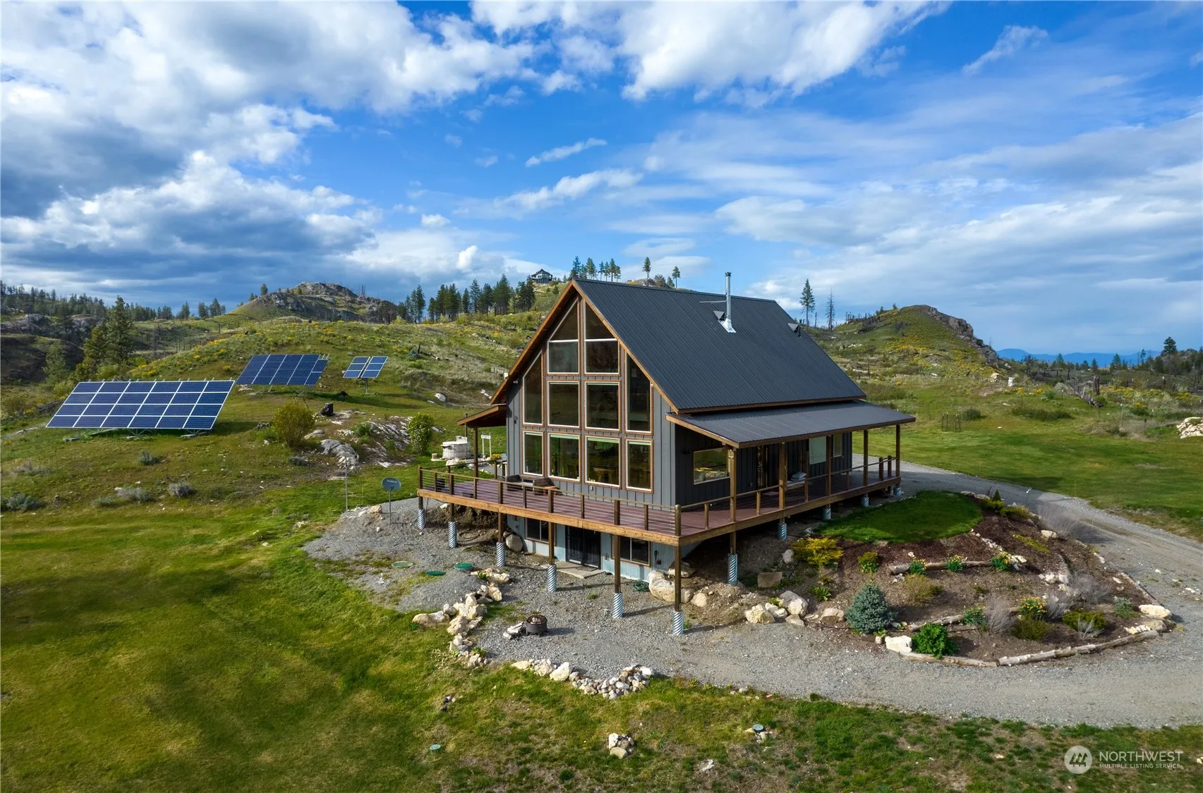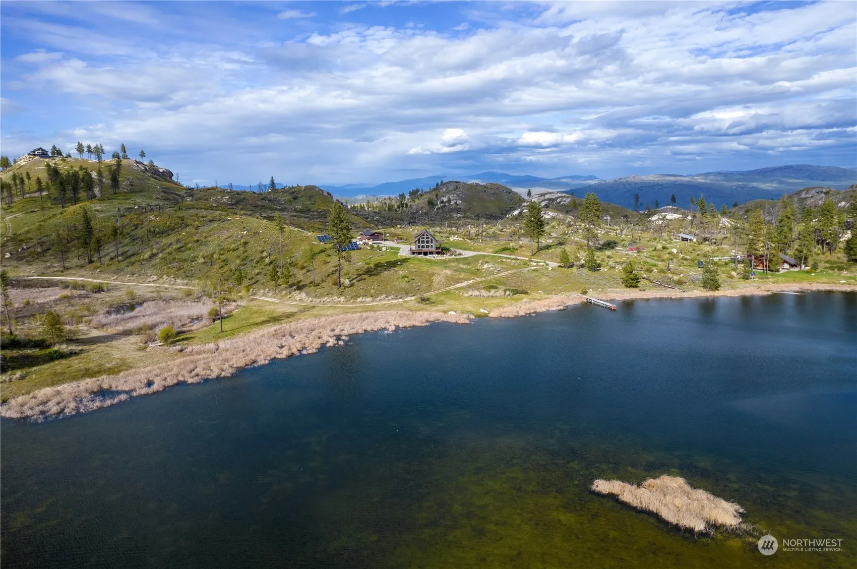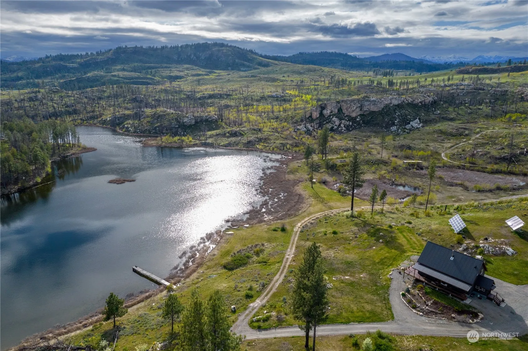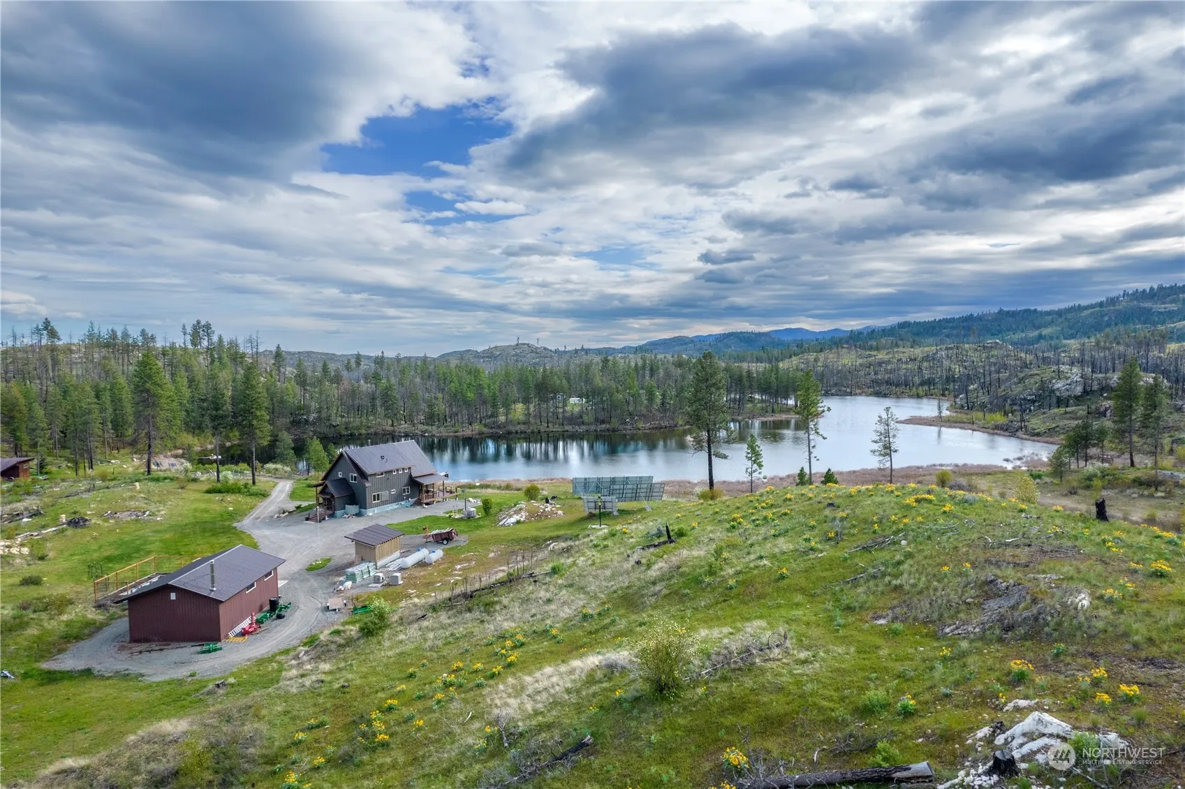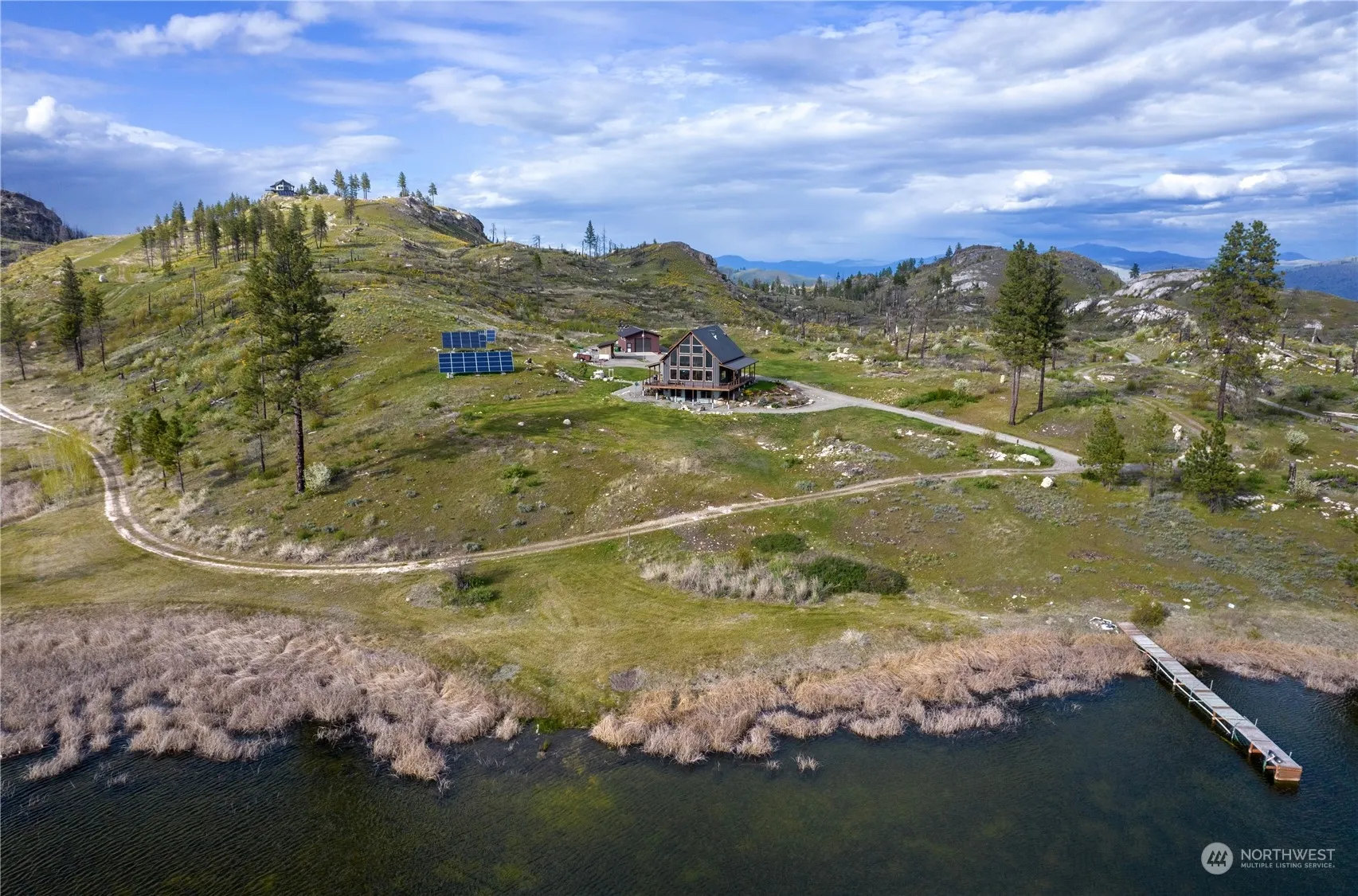 A once in a lifetime opportunity awaits at Shalberg Lake! Over 60 acres & 1200+ft of private lakefront, beauty and recreation are limitless. A wall of windows greets you as you enter this stunning home with top floor Primary w/bath & striking loft entrance. The spacious Great Room w/pellet stove provides unadulterated views of the lake & mountains beyond. There are 2 bedrooms, pantry and laundry/mud room on the main floor. Downstairs is a wide open space perfect for entertainment w/1/2 bath, gas stove & mechanical room. The home is completely off-grid with an impressive solar system & 2 back up generators. There is also a fenced garden and large shop. Waterfront, views, acreage & a gorgeous 2017 home…Life Truly is Better at the Lake!!