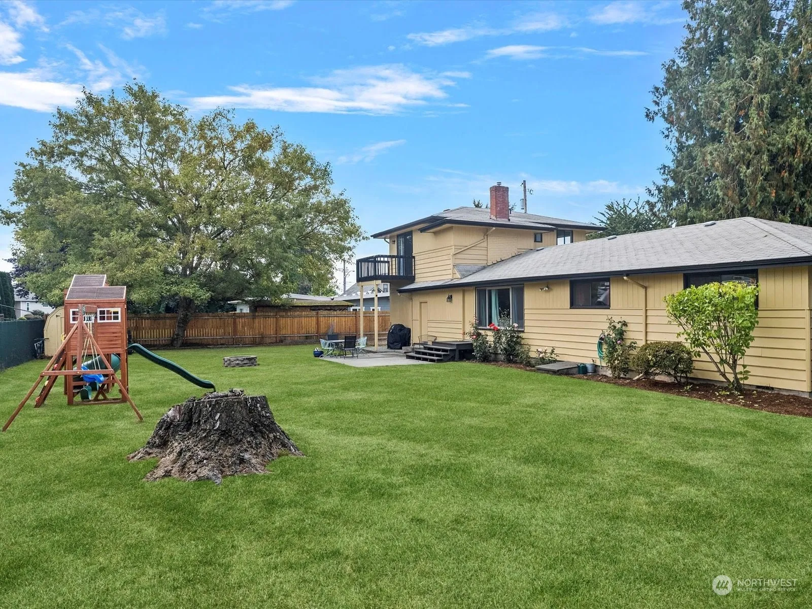 Check out this beautifully maintained 4 bedroom 3 bathroom home on almost half an acre, tucked away yet close to shopping, dining & I-5. The main level features a large living room with a gas fireplace, open to the dining room, a spacious kitchen with the utility room and guest bath off of it, 3 bedrooms & a full bathroom. The second story is a primary suite with a full bath, walk-in closet, sitting space & a private balcony. The upstairs could be used as a flex space, multi-generational living, or a potential ADU. The oversized 1-car garage offers plenty of storage options. Additional off-street parking with room for a boat or RV. The electrical panel was upgraded in 2023. Spacious fully fenced back yard with a patio & mature landscaping.