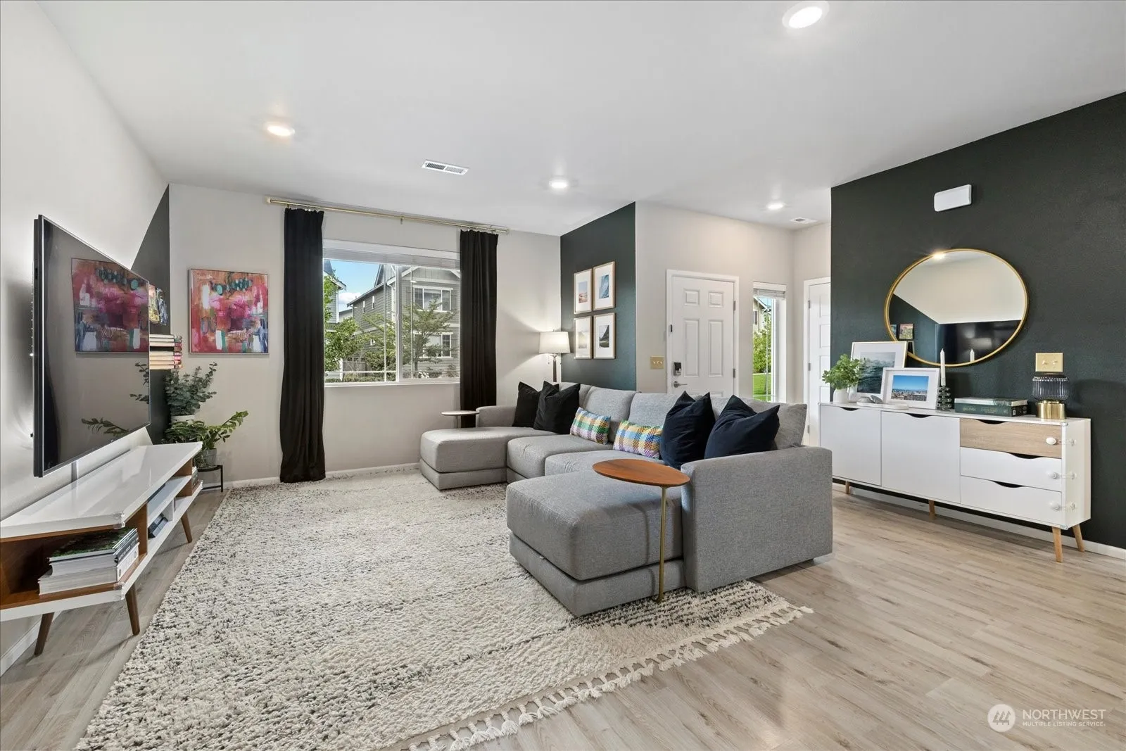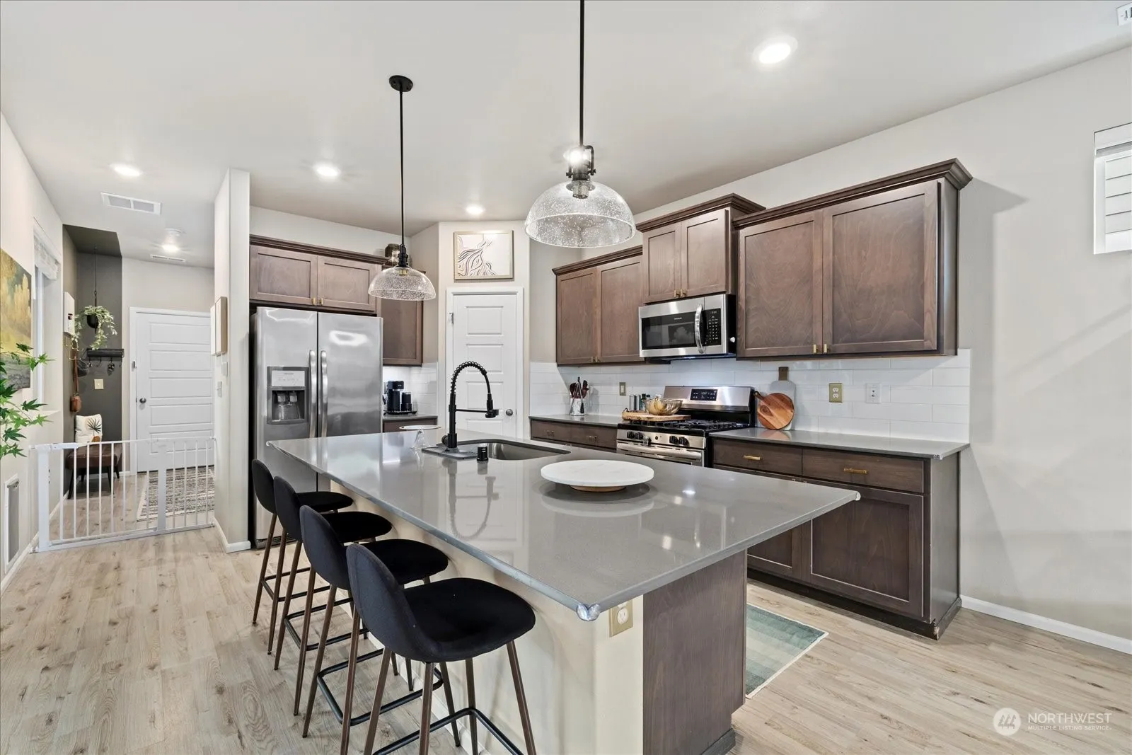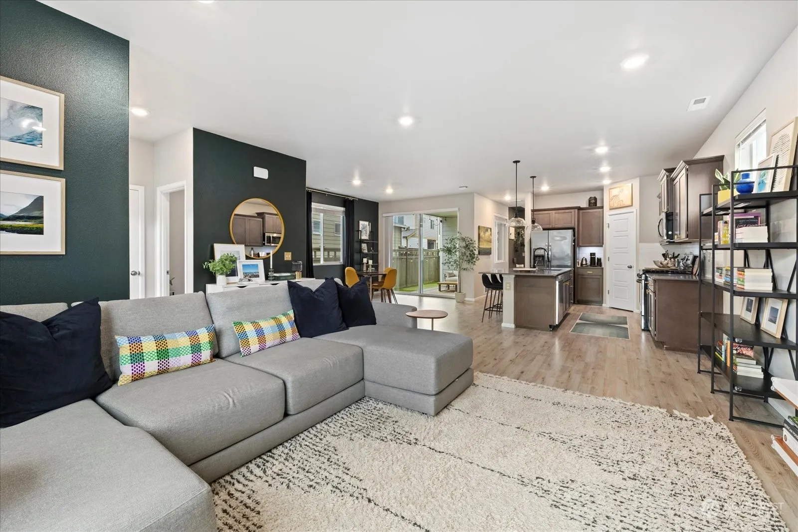 Welcome to this meticulously maintained Ten Trails home offering 4 bedrooms, 2.5 baths. The home is positioned to overlook a serene common area with beautiful landscaping. Well appointed kitchen boasts oversized island with walk in pantry and dedicated dining area. Open concept family room extends to a covered patio and a fully fenced turf yard, perfect for year-round enjoyment and outdoor gatherings. Valuable flex space at the top of the stairs can be used as office space or bonus room concept. 24′ x 20′ two car Garage is fully finished with shelving, epoxy floors and tankless water heater. Home includes central A/C. The Ten Trails community offers playgrounds, walking paths and fun community family events for all.