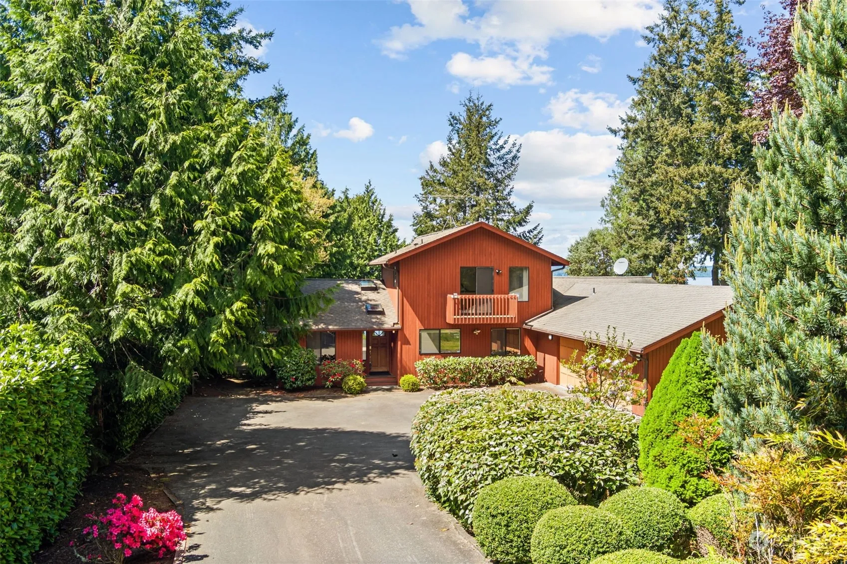 West facing high bank waterfront w/panoramic views. Sunsets against the Olympic Mountain range & the iconic Hood Canal bridge. Nestled among the trees is a well built NW contemporary home. Soaring tongue in groove ceilings, skylights, & walls of view facing windows. Upper level primary suite w/private balcony, walk in closet, & attached bath. Energy efficient heat pump, 10 X 12 storage shed, & attached garage w/a bay partially finished into living space. Fully fenced backyard w/enormous deck. Staircase to the beach exists, but hasn’t been maintained in years. Bald eagles soar majestically overhead, while sea lions, otters, and whales splash below. Cliffside HOA has a beach, park & gazebo. Short commute to ferries to Edmonds & Seattle.