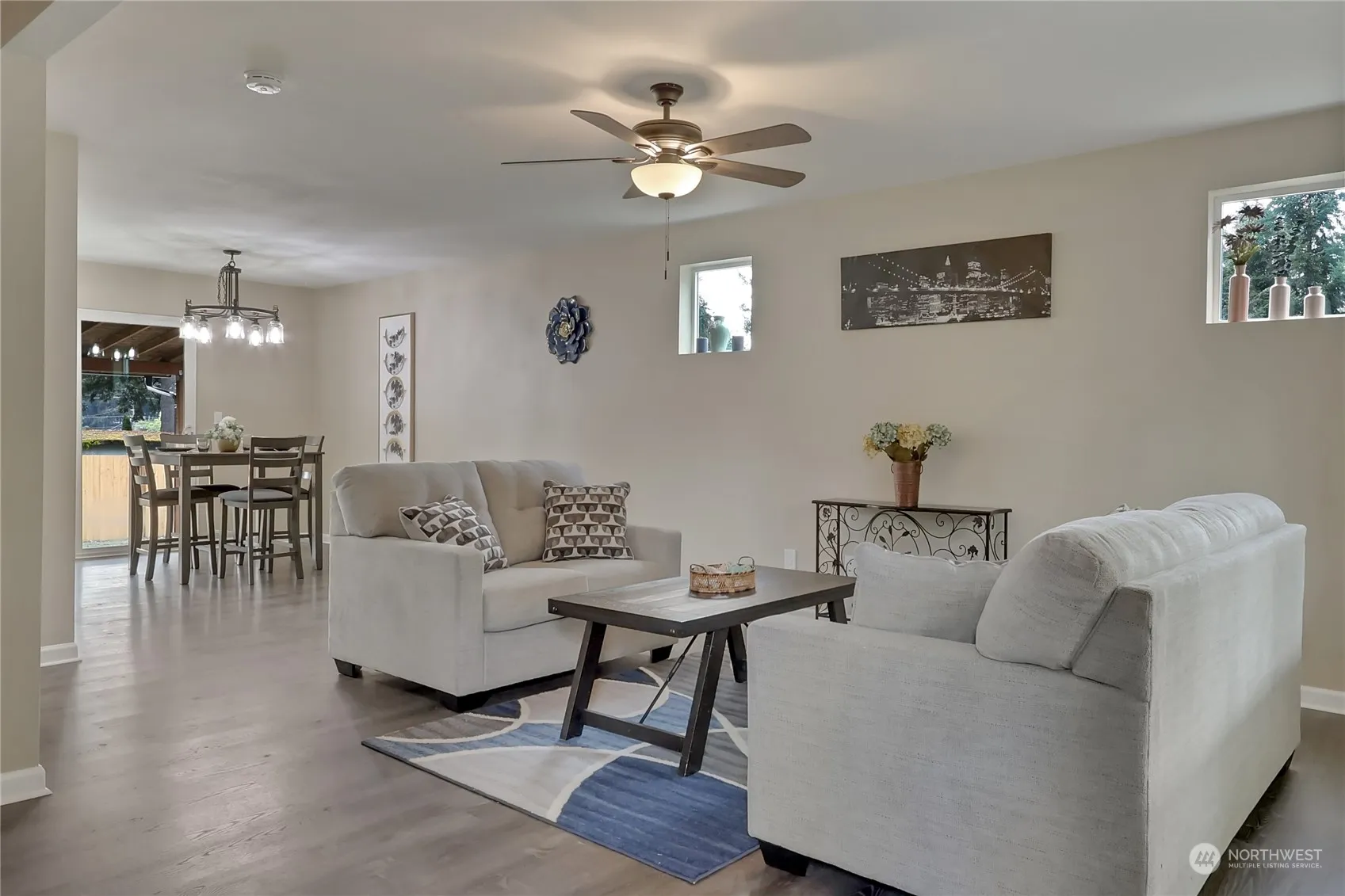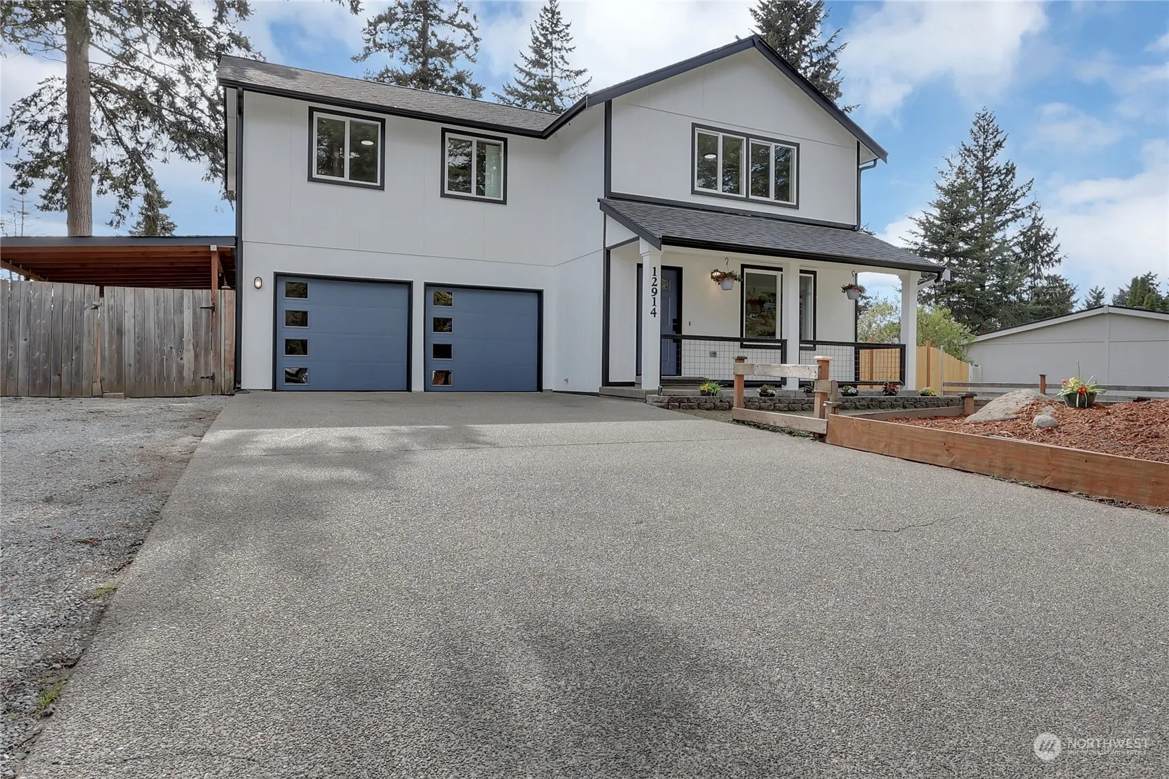 Gorgeous Remodel w/2-Car Attached Garage, RV Parking+2-Car Carport behind a Dbl Gate. Enter via Covered Front Porch into Spacious Living & Dining Rooms w/Laminate Floors. You’ll love the cheery Updated Kitchen w/Eating Bar, Gleaming Quartz Counters & Custom Tile Backsplash, Gold Hardware & Beautiful Gold Pull-down Faucet. Updated Half Bath on Main. 4 Large Beds Upstairs w/Convenient Laundry Rm. Primary Bedroom w/2 Closets (one is a large walk-in), En Suite Bath w/White Cabinets w/Quartz Counters. Brand New Modern Garage Doors & Exterior Lighting on a Large Lot w/Room for RV, Boat, Toys! Covered Back Patio overlooks a mostly Level Fully Fenced Backyard. Septic RSS Done! Located in Bonney Lake, mere minutes from Shopping, Schools & Parks!