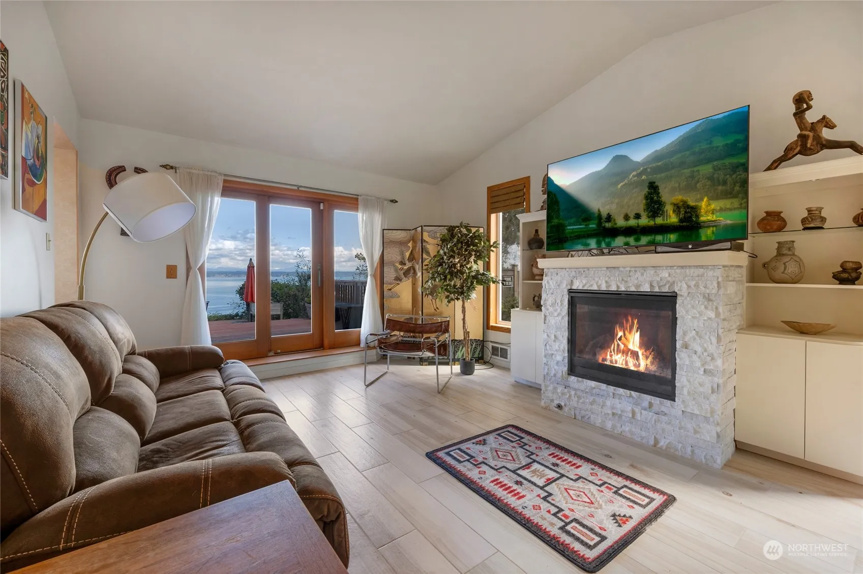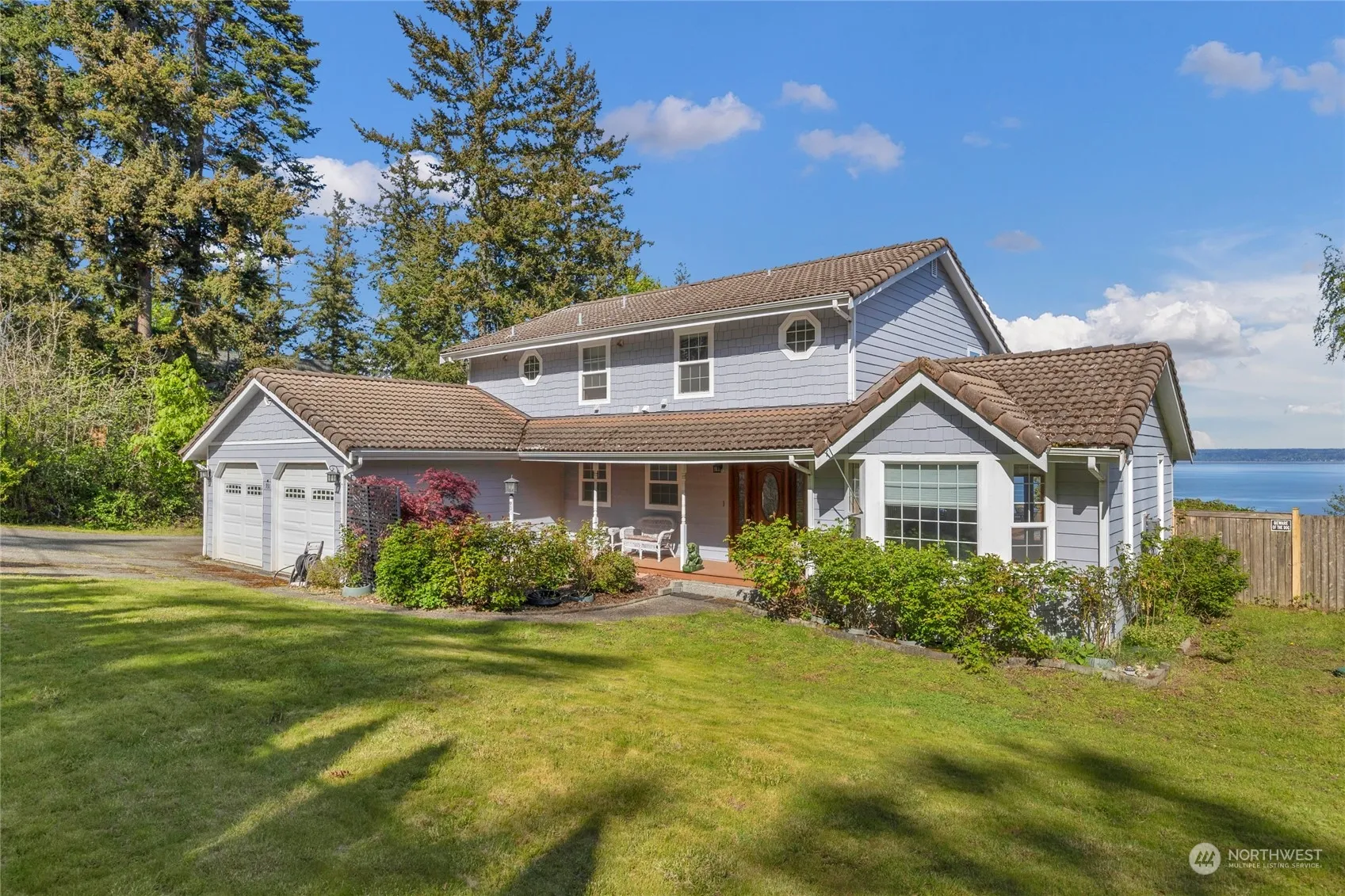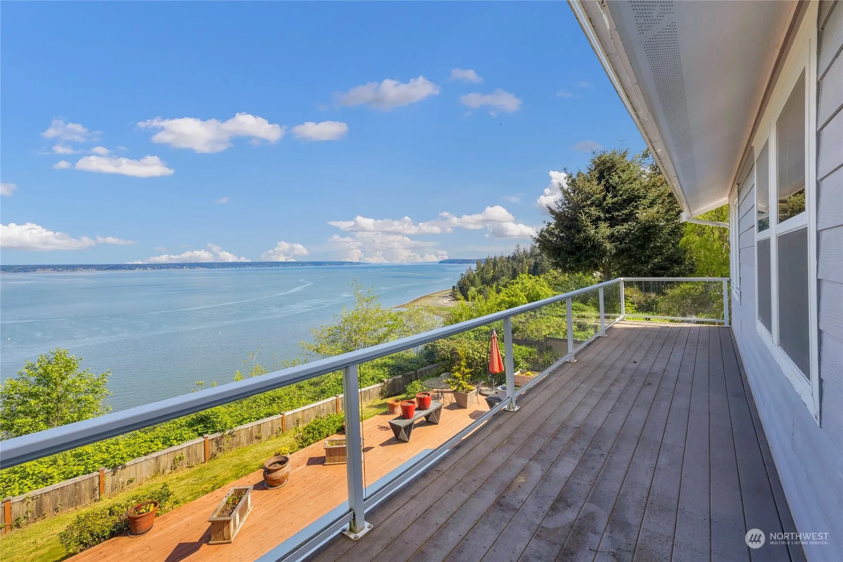 This stunning Camano Island home offers breathtaking 180° views of Port Susan Bay & Cascade Mountains. Vaulted ceilings grace a sunlit living room, leading to a new expansive deck & fenced yard. A renovated fireplace & French doors enhance seamless indoor-outdoor living. The kitchen boasts granite counters, alder cabinets & SS appliances. Wake up to vistas from the primary suite’s balcony. With an office, dining room & 2-car garage, it’s a perfect blend of elegance & comfort. Watch eagles & whales from your high bank waterfront oasis. Enjoy crabbing, kayaking, or fishing at nearby beaches. Hiking trails, grocery, dining, shopping, & Island Lifestyle surround you. The Golf Course is a 3-minute drive & easy commute to I-5.
