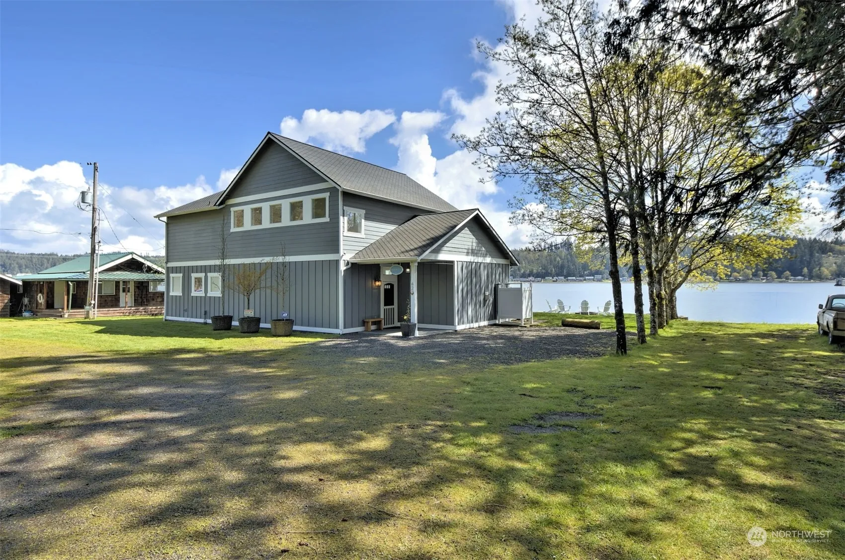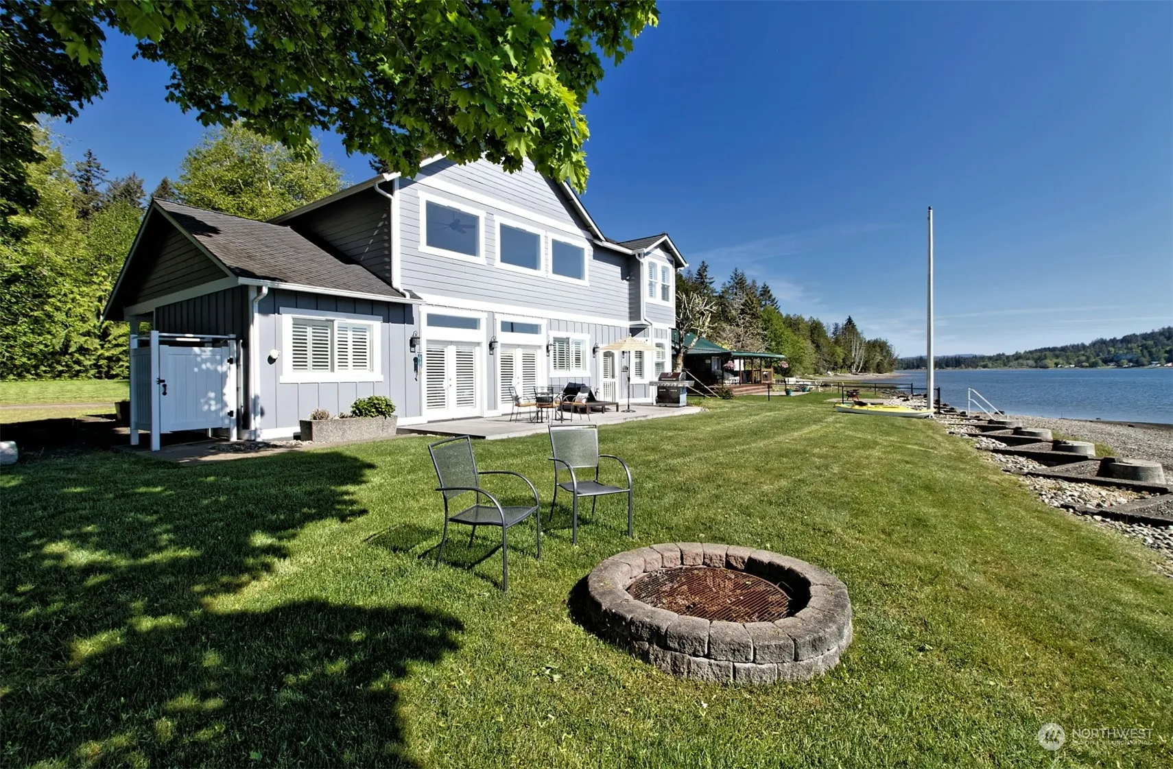 Welcome to waterfront paradise! Come see this special property with a 2323 SF home on Case Inlet, Allyn, offering unparalleled waterside living. The low bank +/-88 ft, bulk-headed beach is perfect for clam & oyster harvesting, with tidelands to 50ft out. Inside, enjoy Great Room Style living, chef’s kitchen, handmade log dining table by local artisan (stays with the house) & french doors to breathtaking water view. With a main level primary suite, two additional bedrooms and a loft/office upstairs…work-from-home meets coastal serenity. Radiant floor heat, tankless water heater, and a spacious front deck for entertaining complete the package. Parks, boat launch, marina, restaurants, and more nearby. This is coastal living at it’s finest.